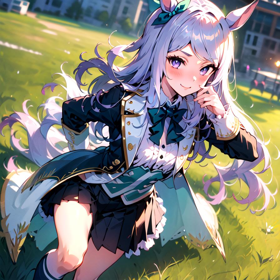 try adding : black skirt, green bowtie if the Racing Clothes dosen't appear