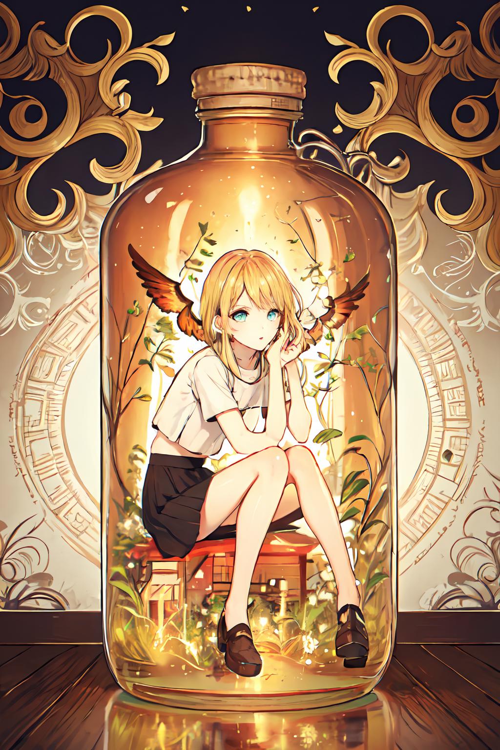 触发词:phgls, in container, (外加一种容器的名称如 bottle, cup)