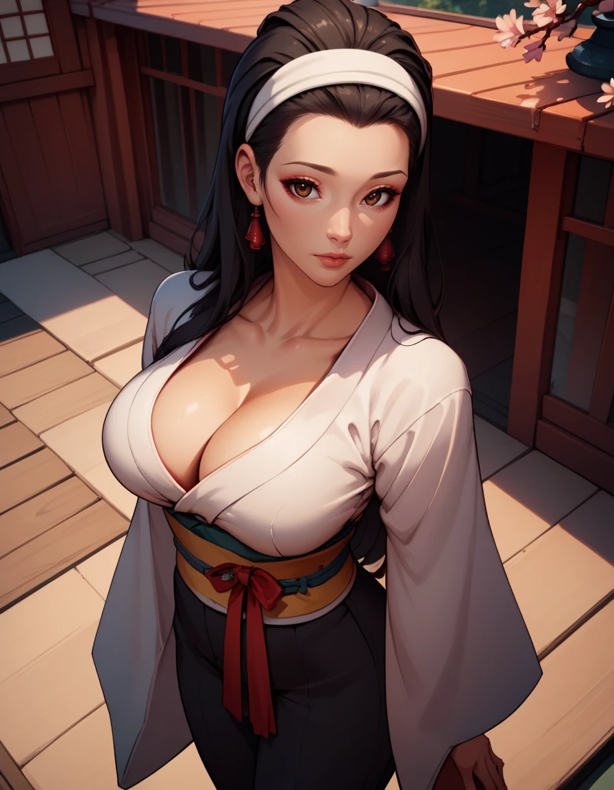 hairband, shoes, black pants, wide sleeves, high heels, sash, wide sleeves,black footwear,