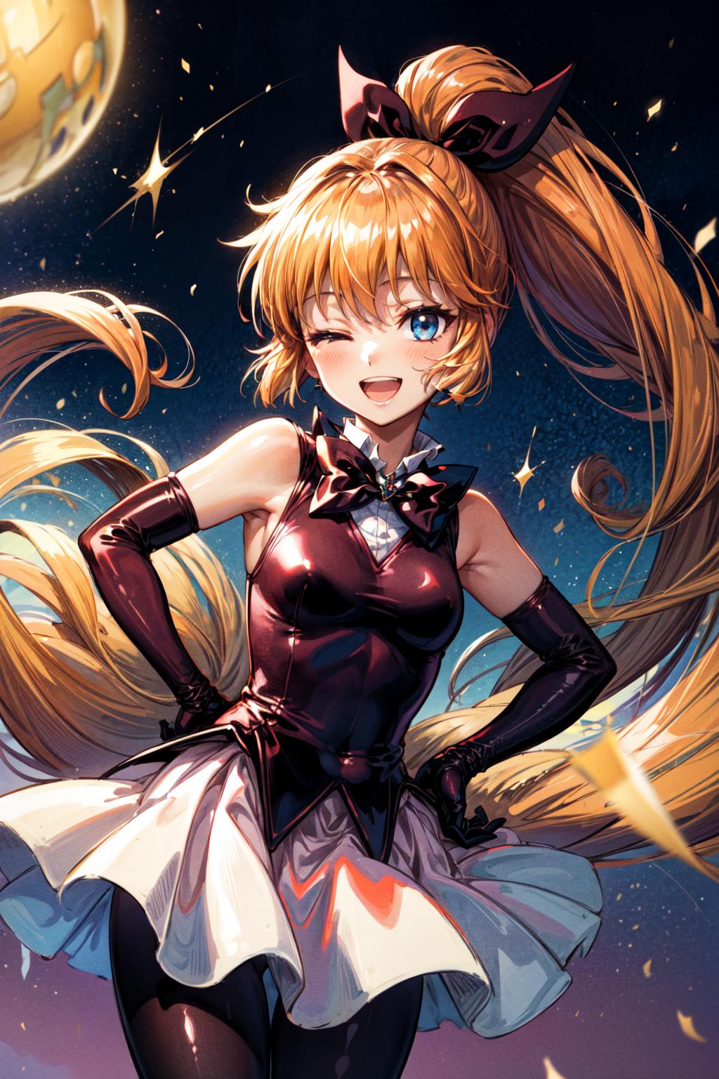 gloves, elbow gloves, skirt, magical girl, black gloves, pantyhose, bowtie