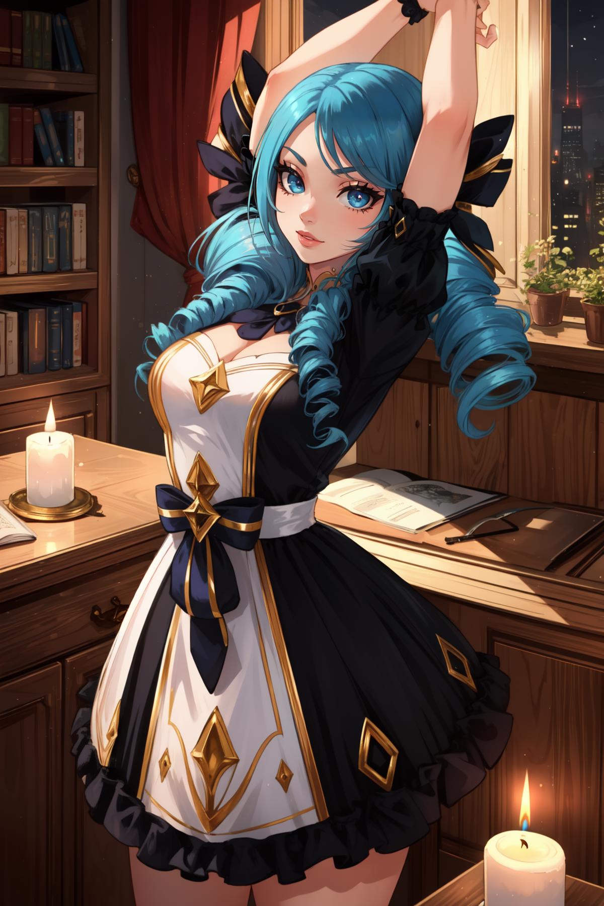 twin drills, drill hair, twintails, bow, hair bow, black bow, dress, short sleeves, grey dress, puffy sleeves, black dress
