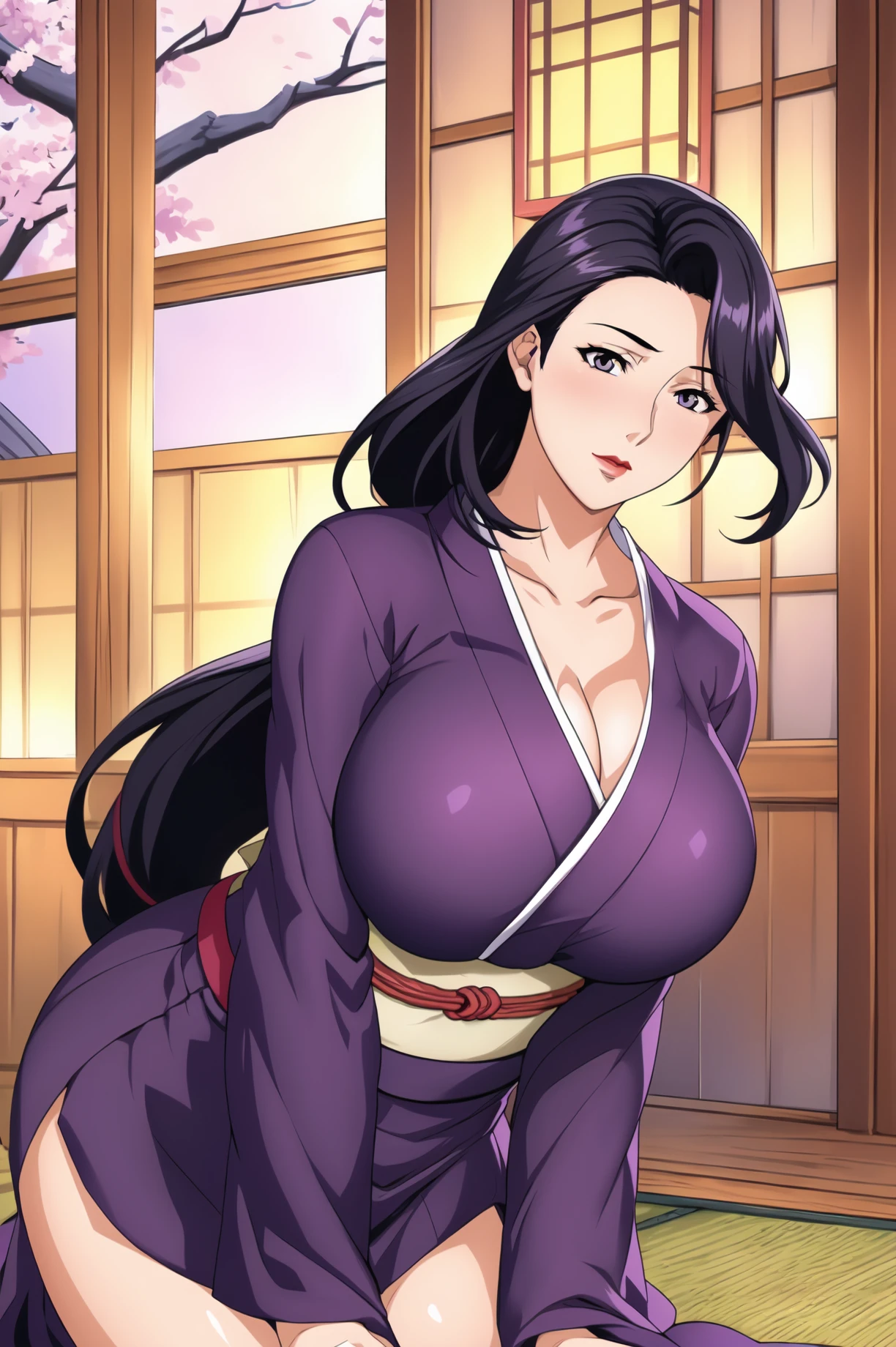 purple_kimono,shouji, shrine,japanese_clothes,long sleeves, wide sleeves,