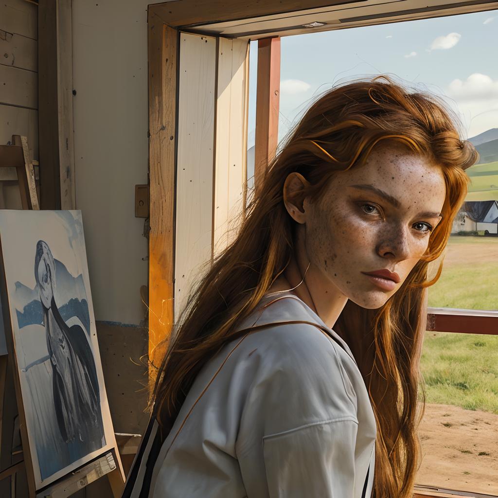 made with images of redheads, with freckles and blue eyes. Problem with the model are the eyes are messed up.