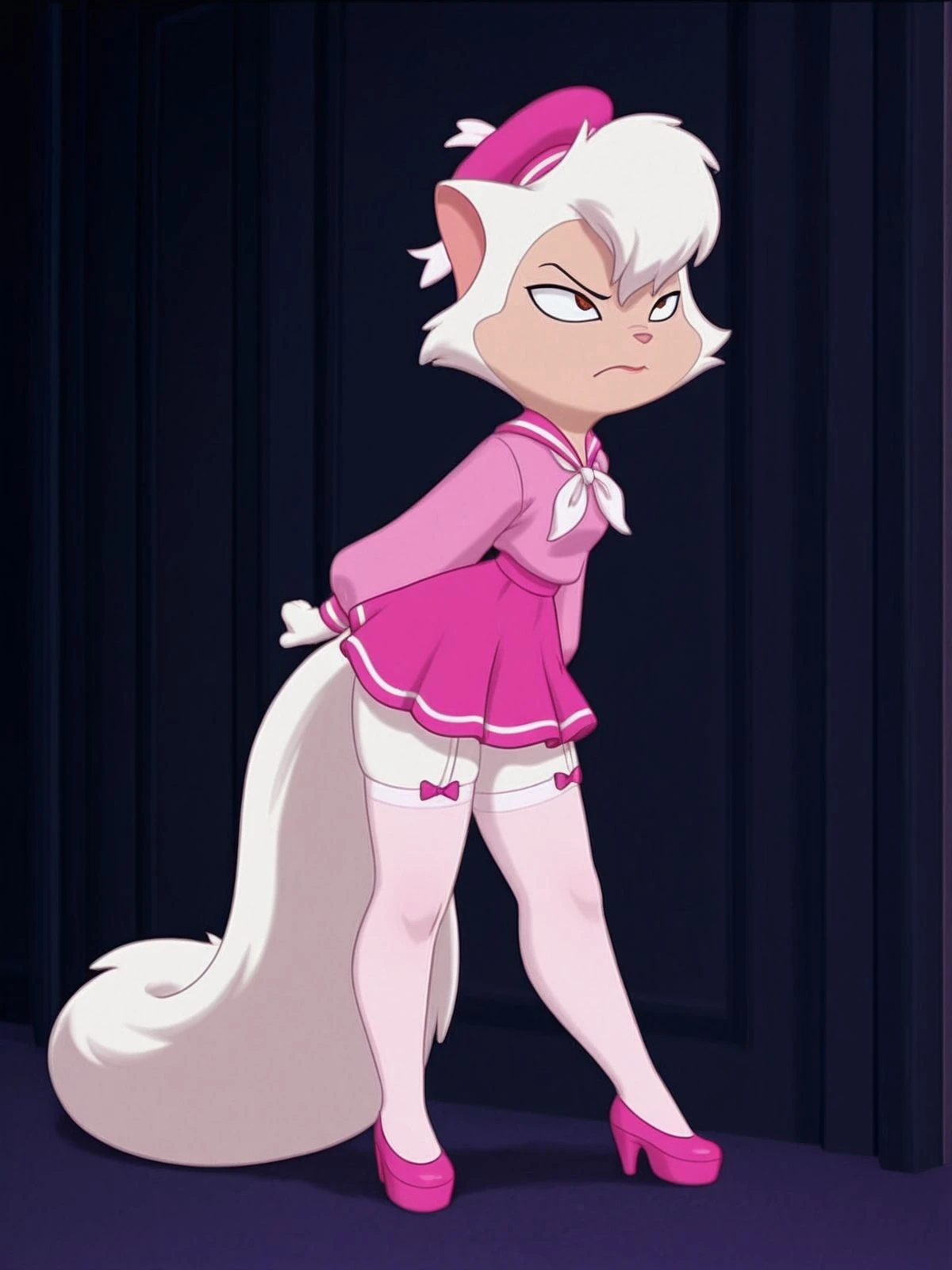 4 - sailor costume, sailor cosplay, pink skirt, pink shirt, beret, pink beret, neckerchief.