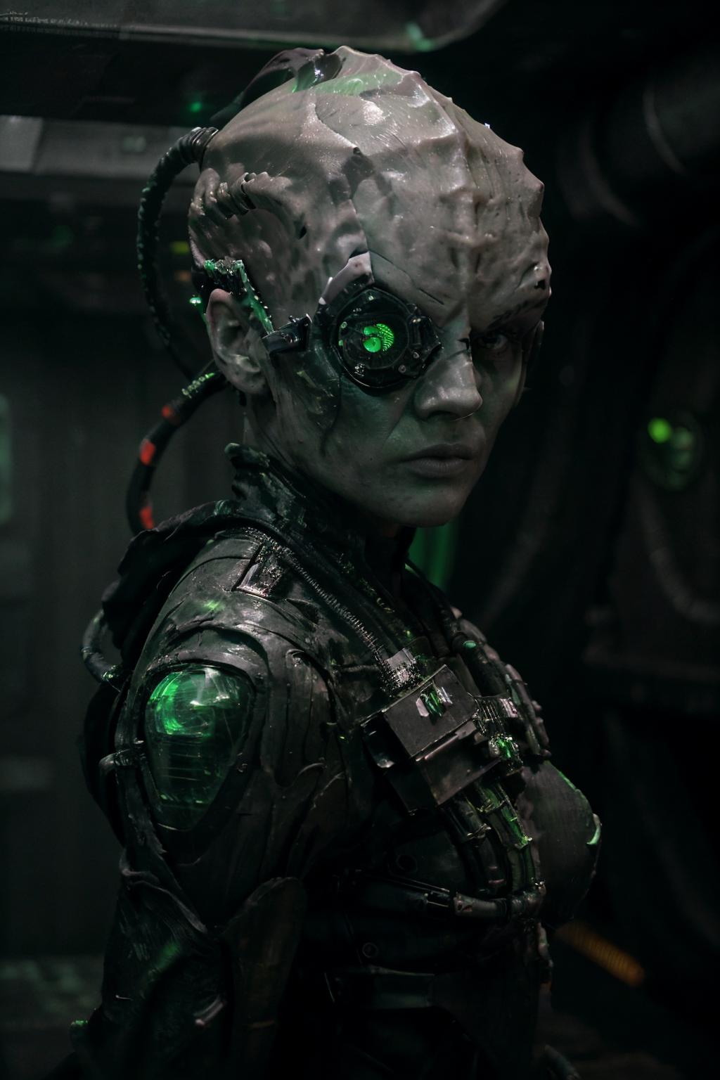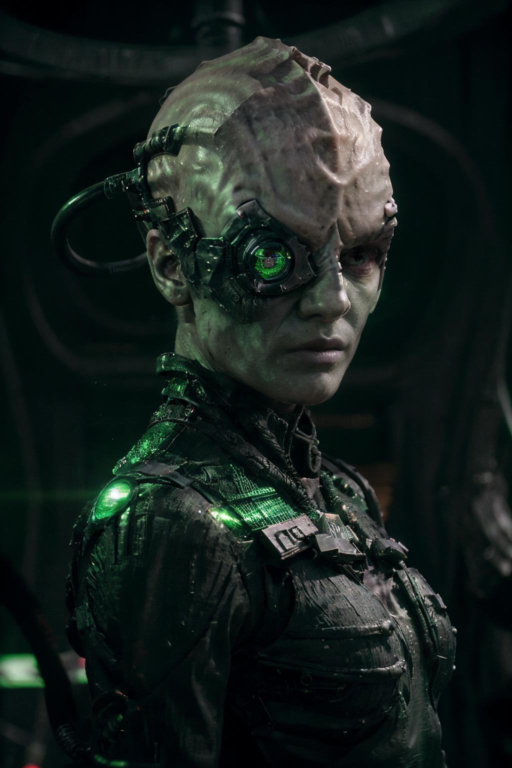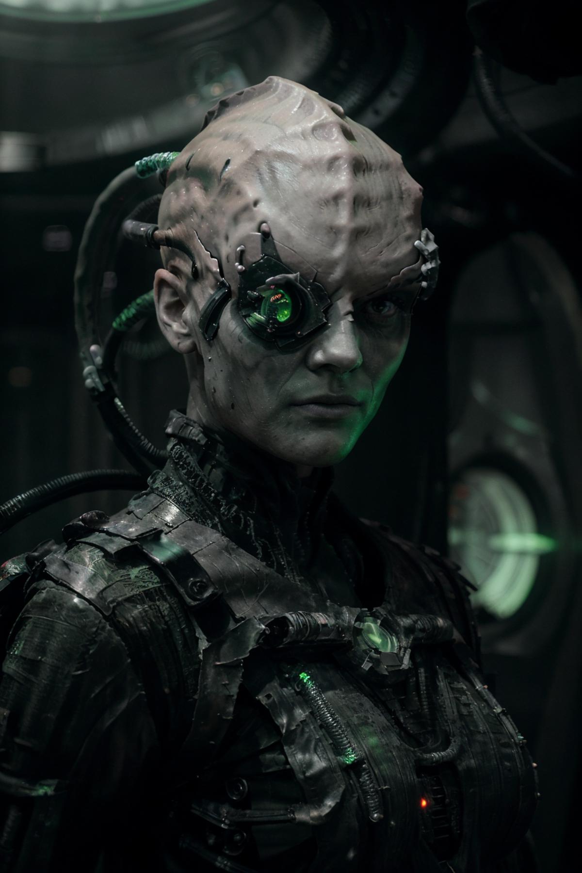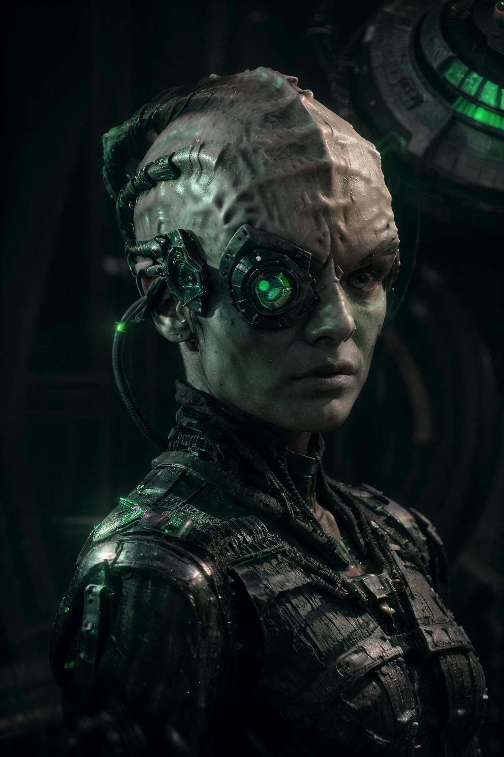 Trigger: borg (man/woman), cyborg, gray skin, vein