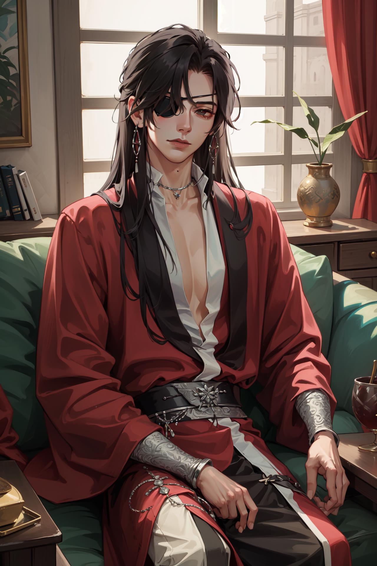tags: hua cheng, 1boy, eyepatch, male focus, chinese clothes, jewelry, long hair