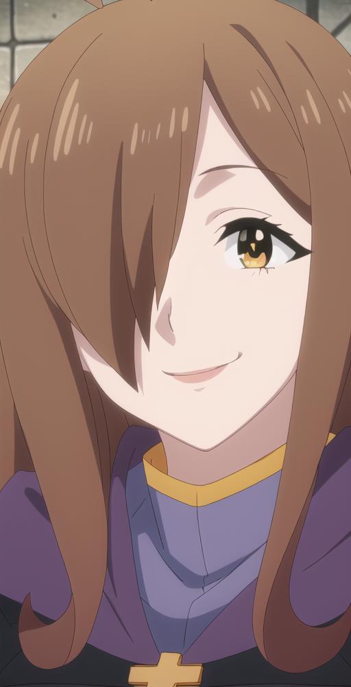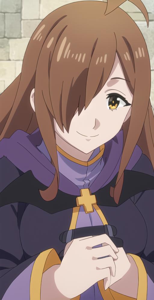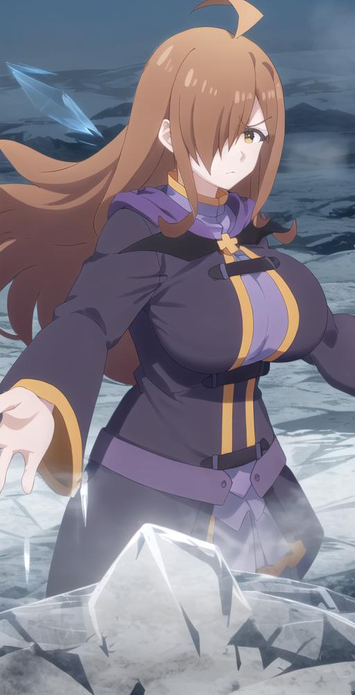 For main outfit, "ahoge, ???????????, sidelocks, wide sleeves, hair over one eye, robe, long sleeves, hair over one eye,"