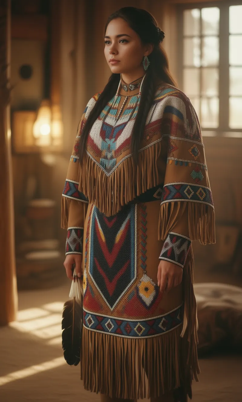 Шагните в свое наследие с аутентичной бисерной работой коренных американцев и развевающейся бахромой. Превратите любое фото в культурные регалии — гордые традиции, переосмысленный в пикселях.