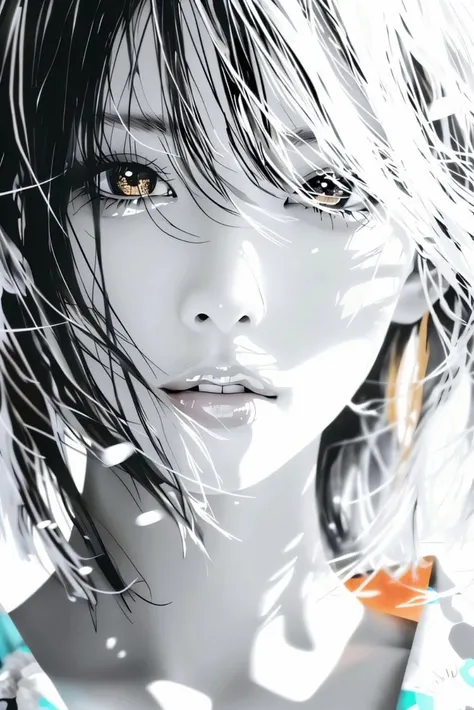 (chibi:1.3), A girl wielding a Japanese sword with a serious expression,fox_ears, red_eyes, long_black_hair, blunt_bangs, white_sarashi_top, japanese_open_clothes, black_pleated_mini_skirt, bandaged_arm, black_gloves, bandaged_leg, black_pantyhose, black_boots_footwear, neon street diorama