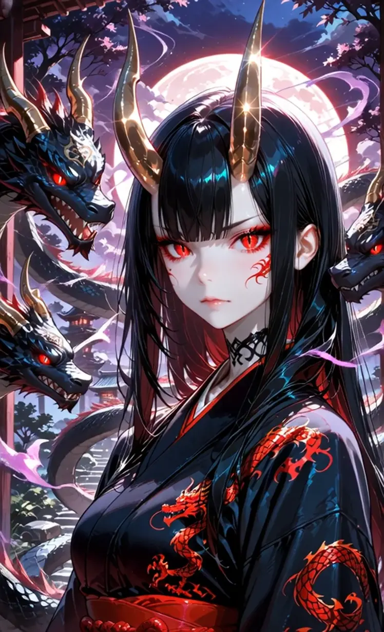glass shards, reflection, broken glass,<Akakitsune>, fox_ears, red_eyes, long_black_hair, blunt_bangs, white_sarashi_top, japanese_open_clothes, upper body, front view, dark background, (masterpiece:1.3, 8k:1.3, highest quality:1.3, detail:1.3, high resolution:1.3, dramatic lighting:1.2, ultra detailed)