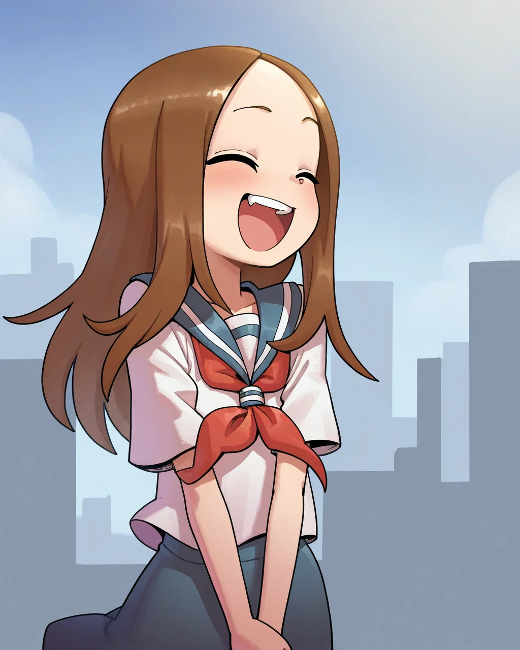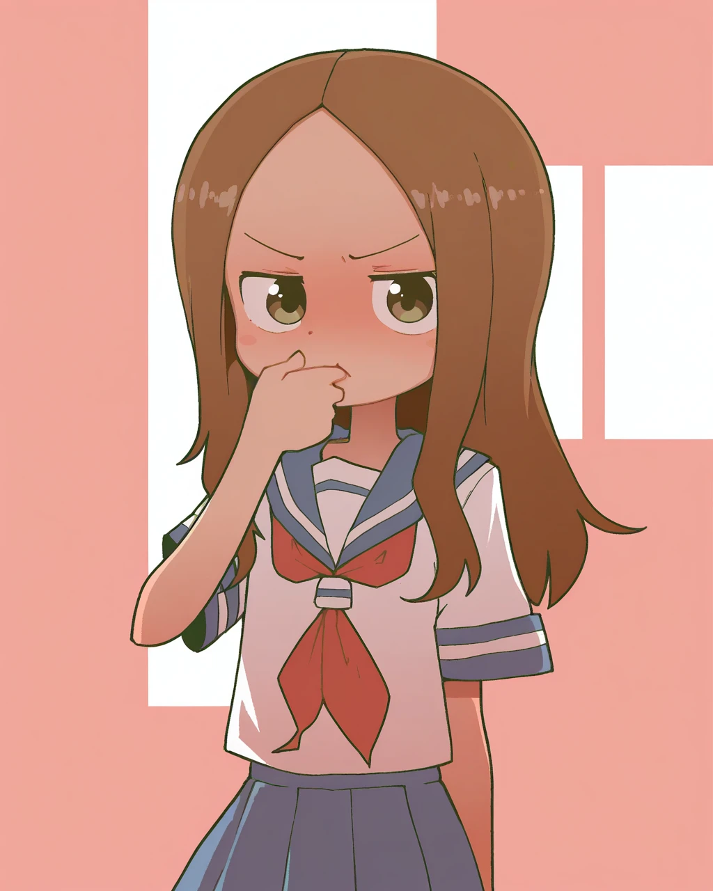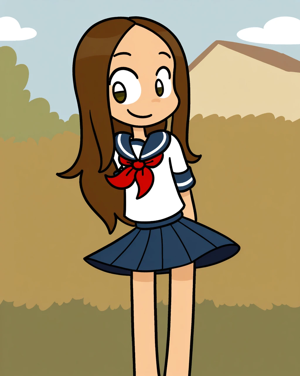 Use takagisan to summon her, optionally, use child to make her look like a child version. use brown eyes, brown hair, long hair, forehead to form her head, go wild with clothings.