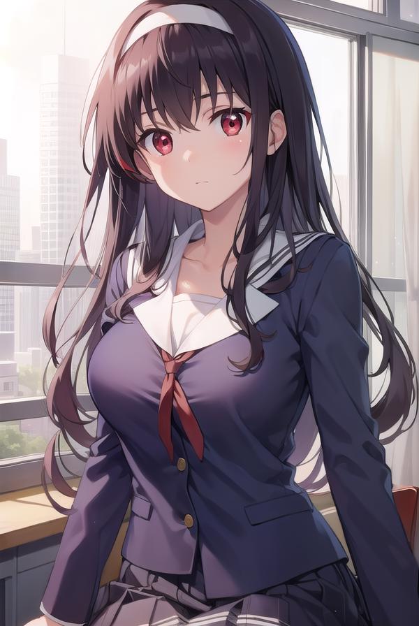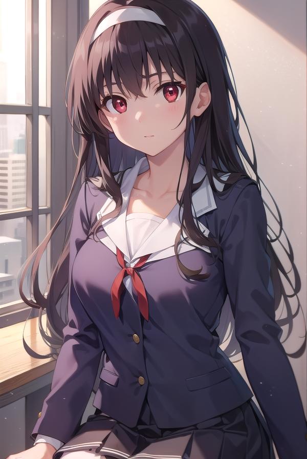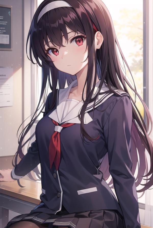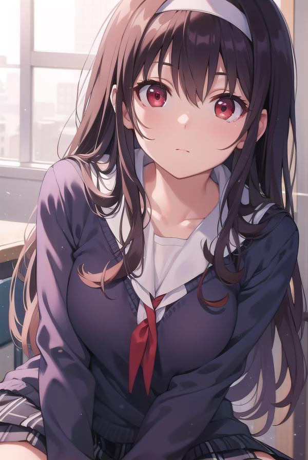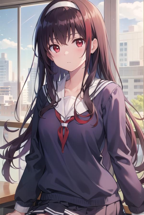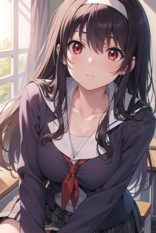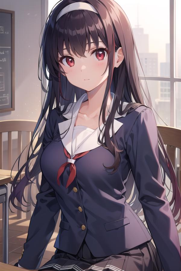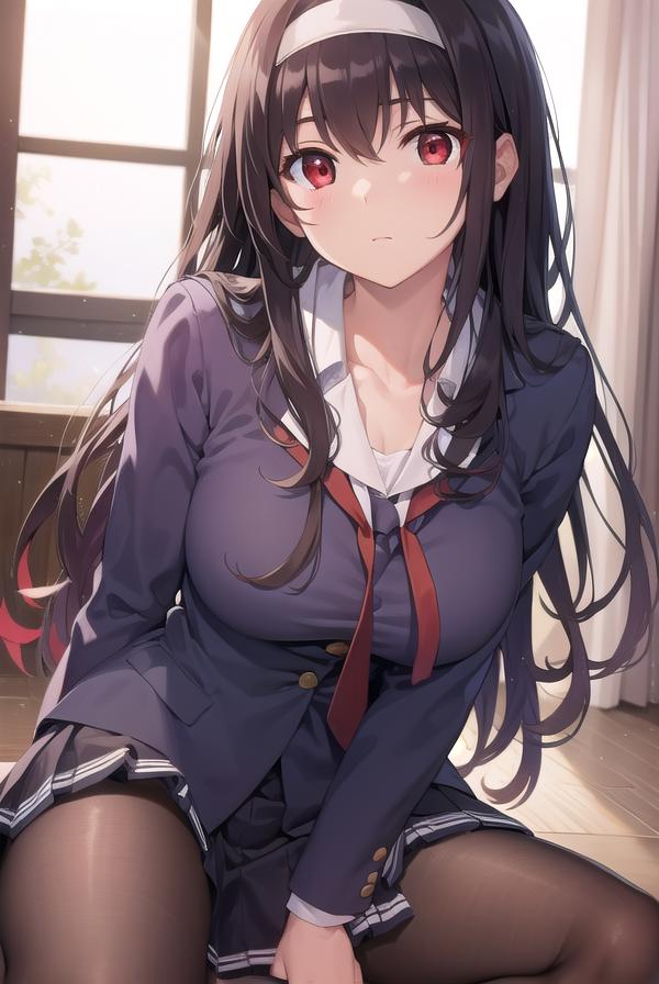 utaha kasumigaoka, black hair, hairband, long hair, (red eyes:1.5),