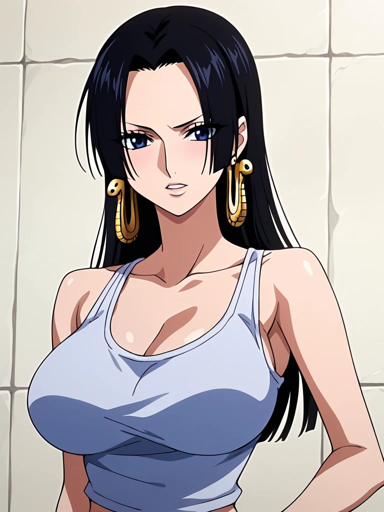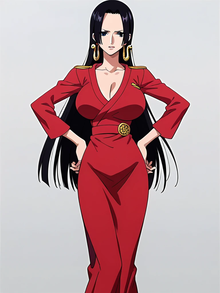 boa_hancock,long hair, black hair, earrings, large breasts,