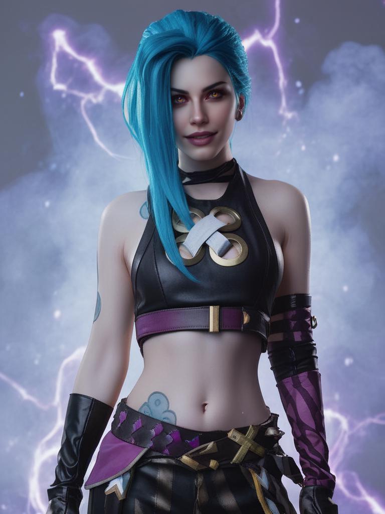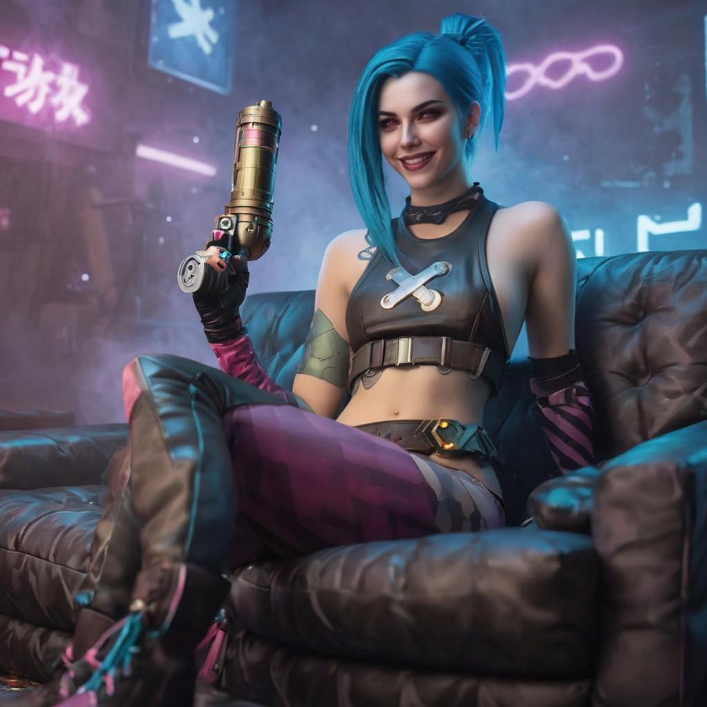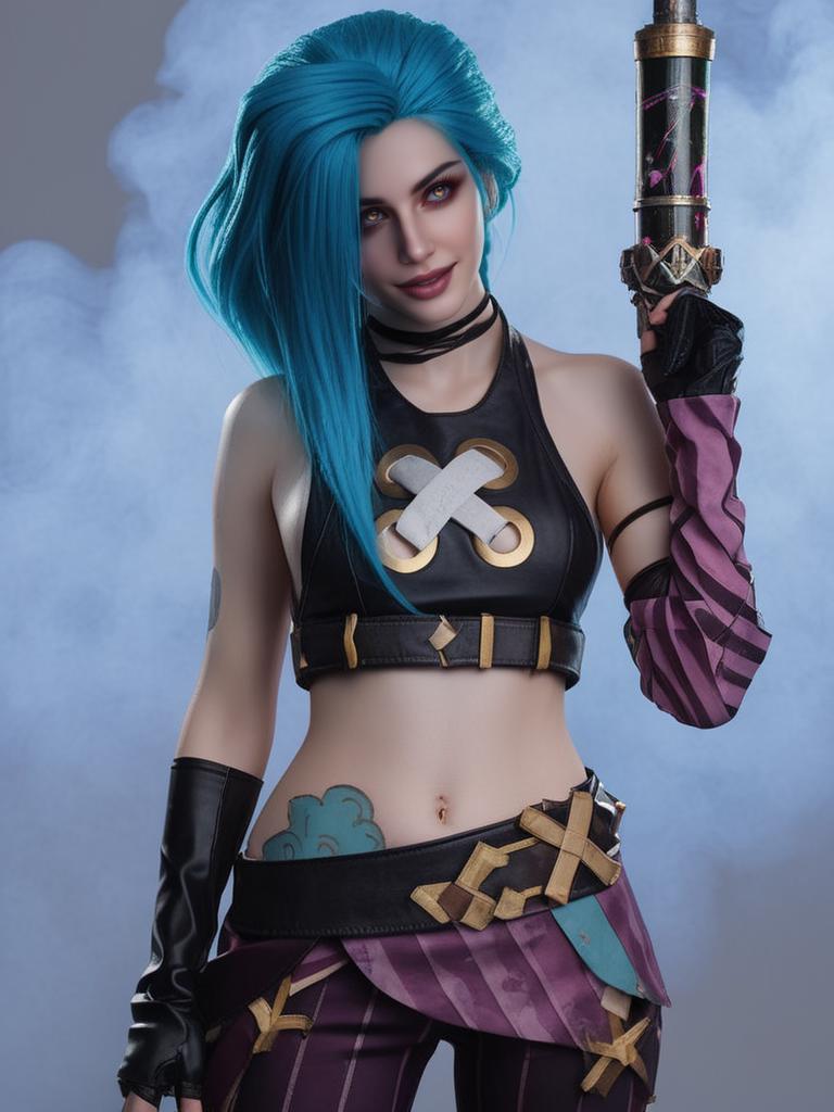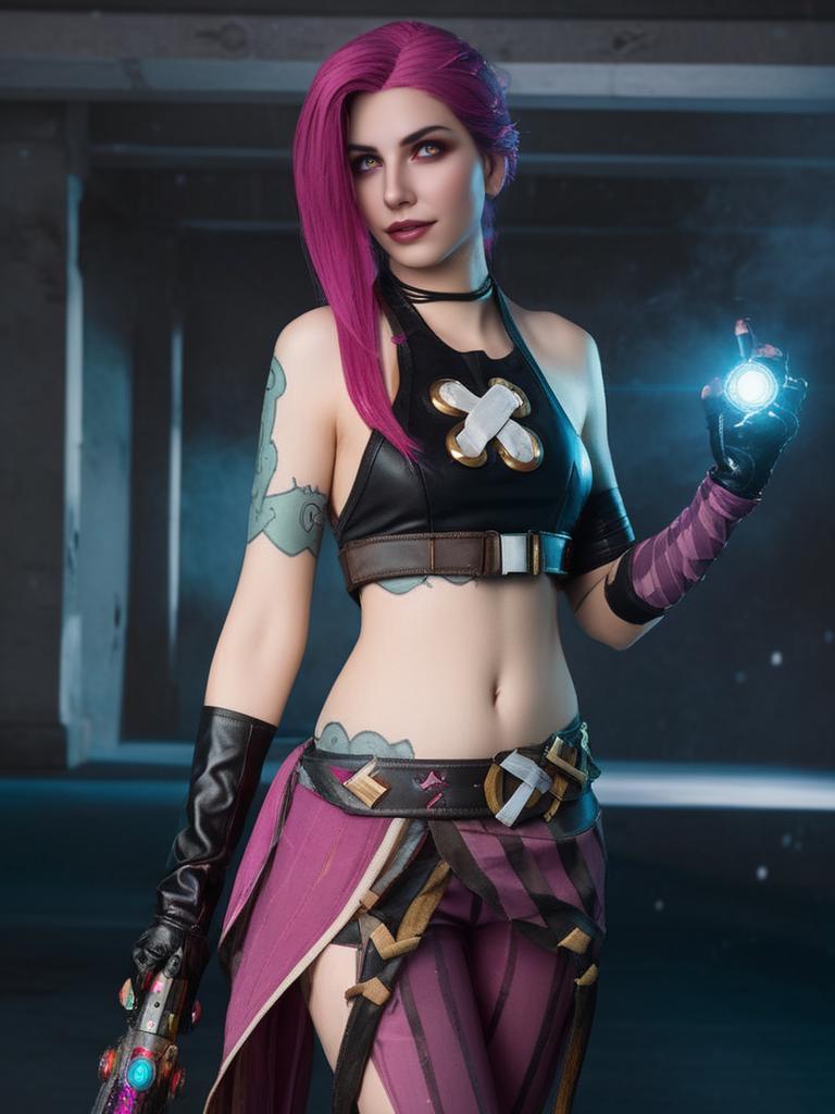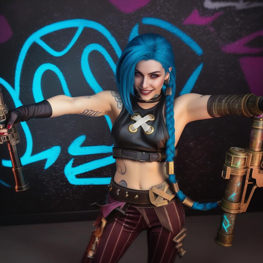 Jinx, also known as The Loose Cannon, is a villainous playable champion in the MOBA game League of Legends and one of the two main protagonists (alongside her sister Vi) of its Netflix animated spin-off/prequel series Arcane. She is the arch-nemesis of Vi.
