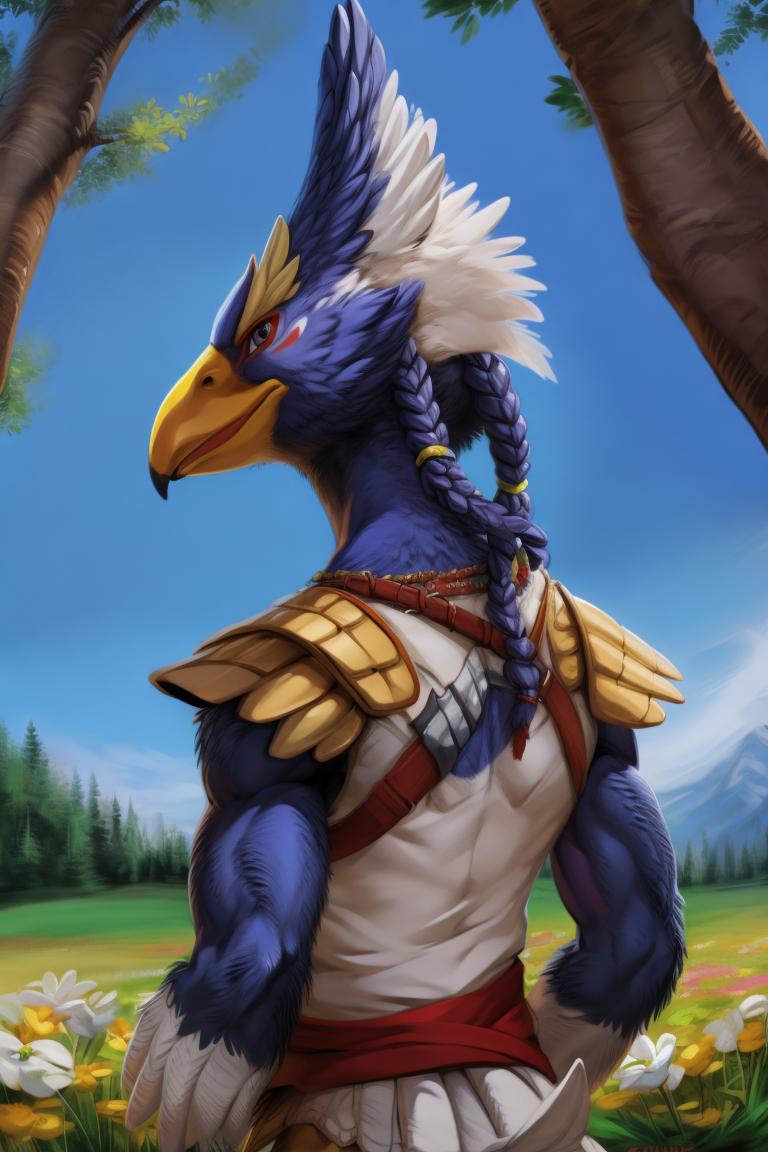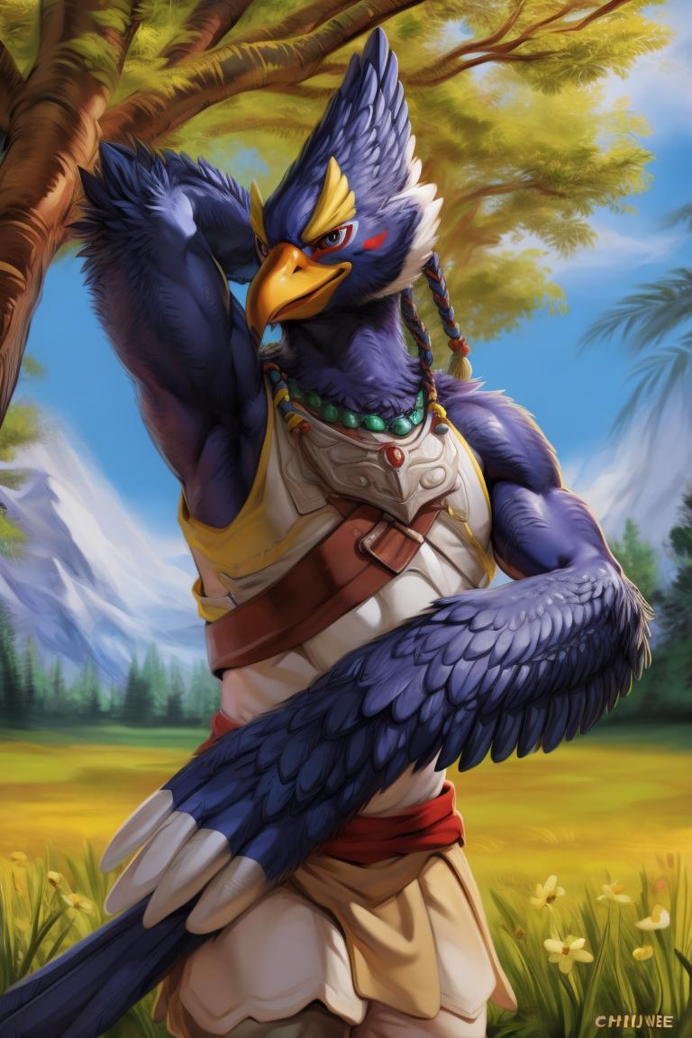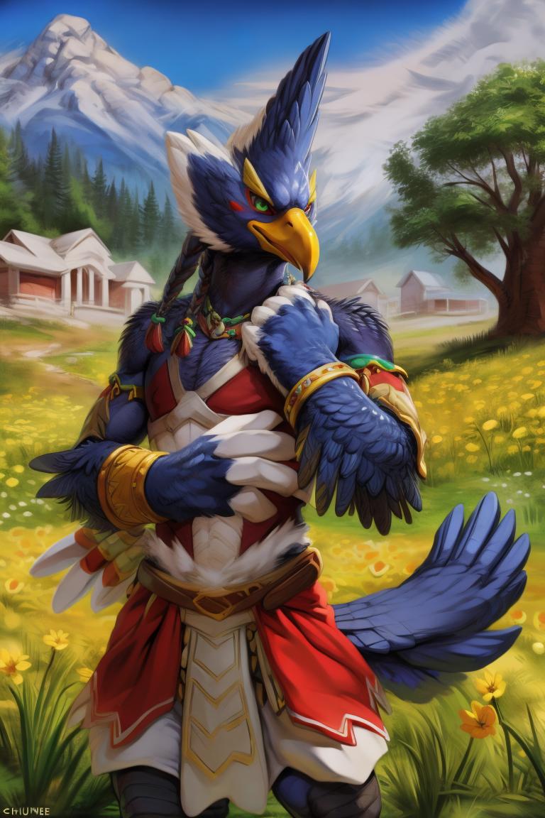 Another bird boy from Zelda, Trained on Fluffyrock Lion e27 non offset. he's trying to make some Jojo pose on some pics XD