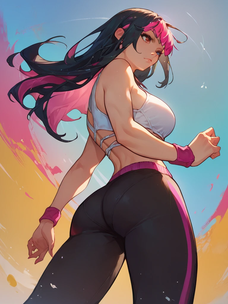 JuriMS , sfva, multicolored hair, long hair, yoga pants