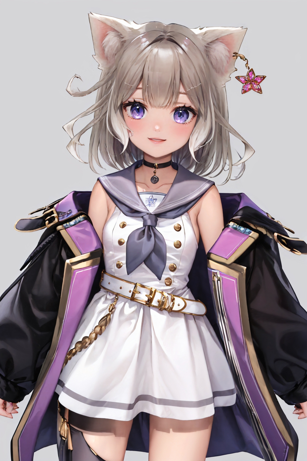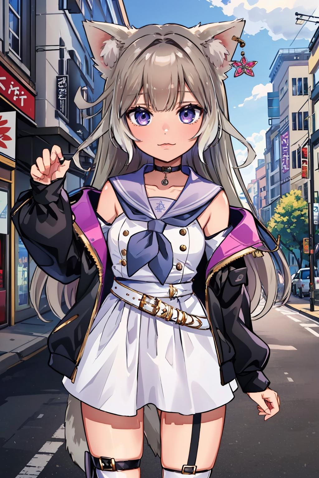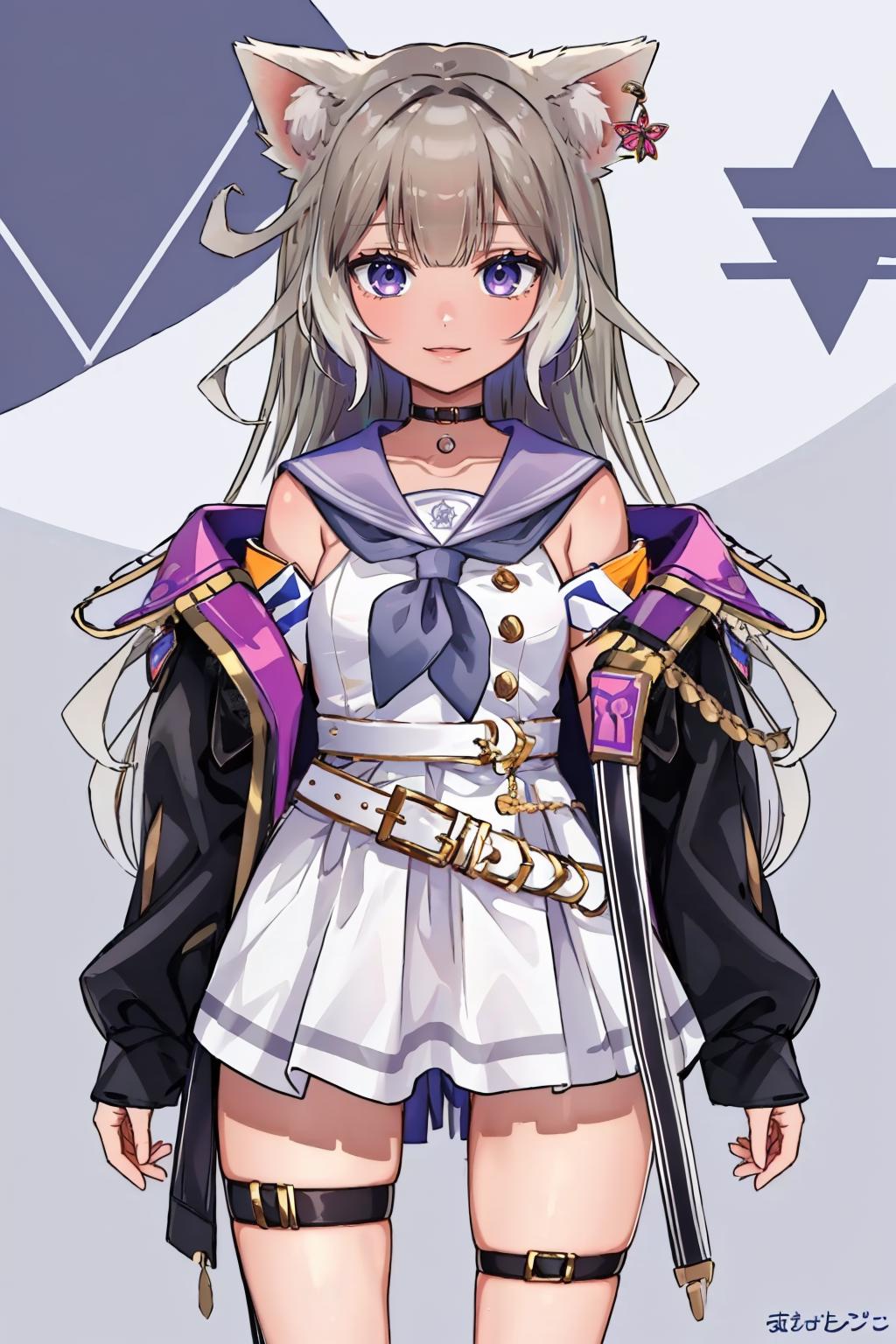 Second Costume: sailor collar, jacket, off shoulder, thigh strap, choker