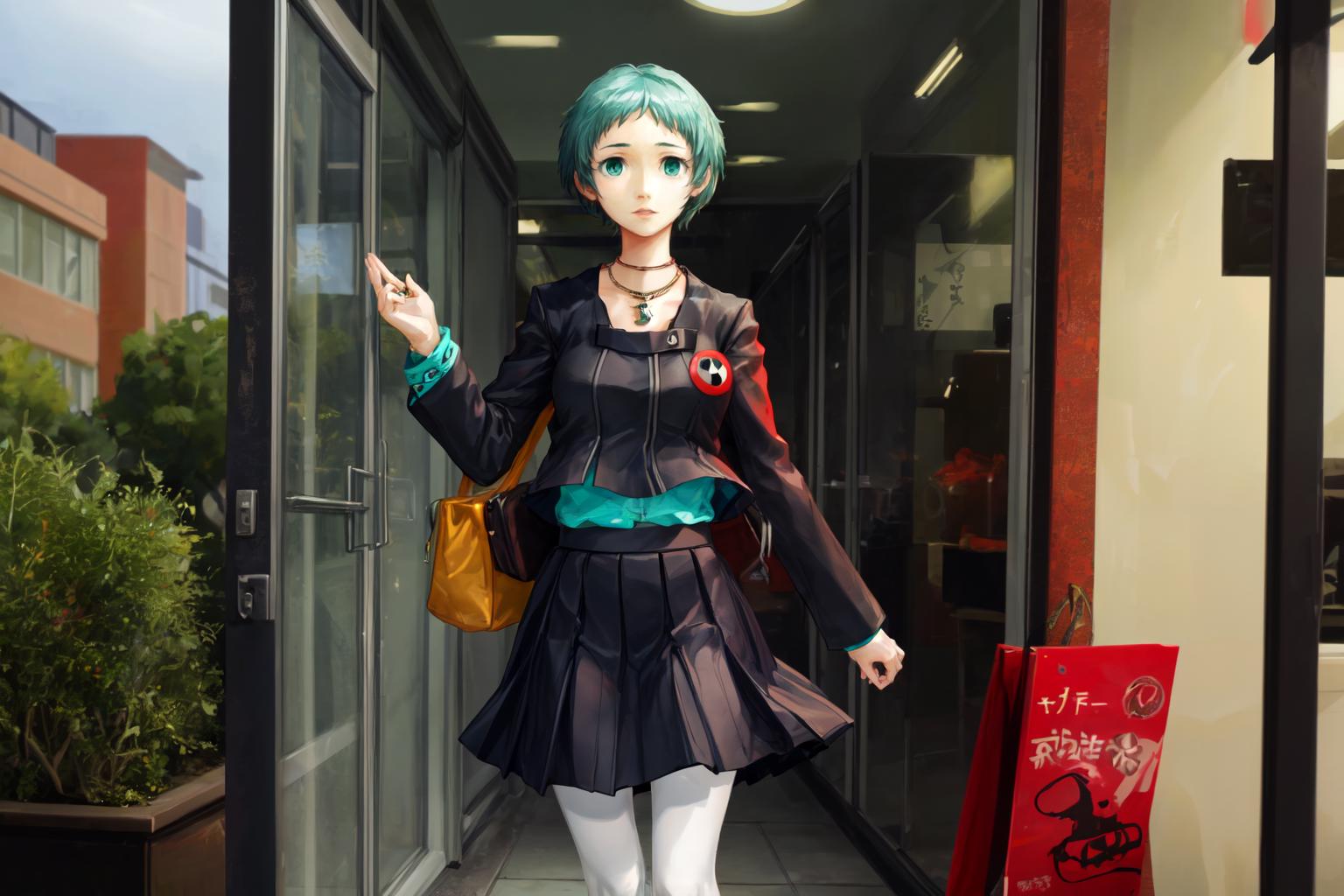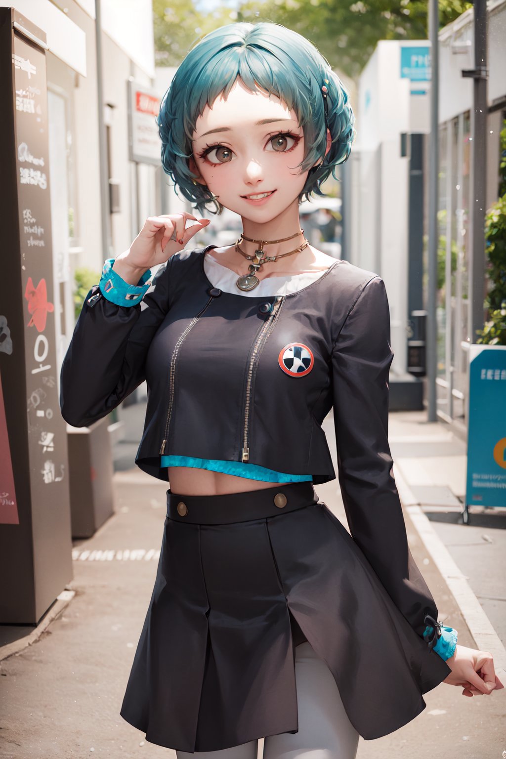 Default Outfit: school uniform, skirt, white pantyhose, jewelry, necklace