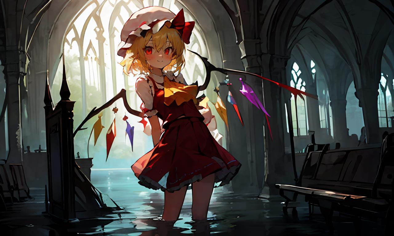 同时使用flandre_scarlet_touhou.safetensors作为LoRA。
