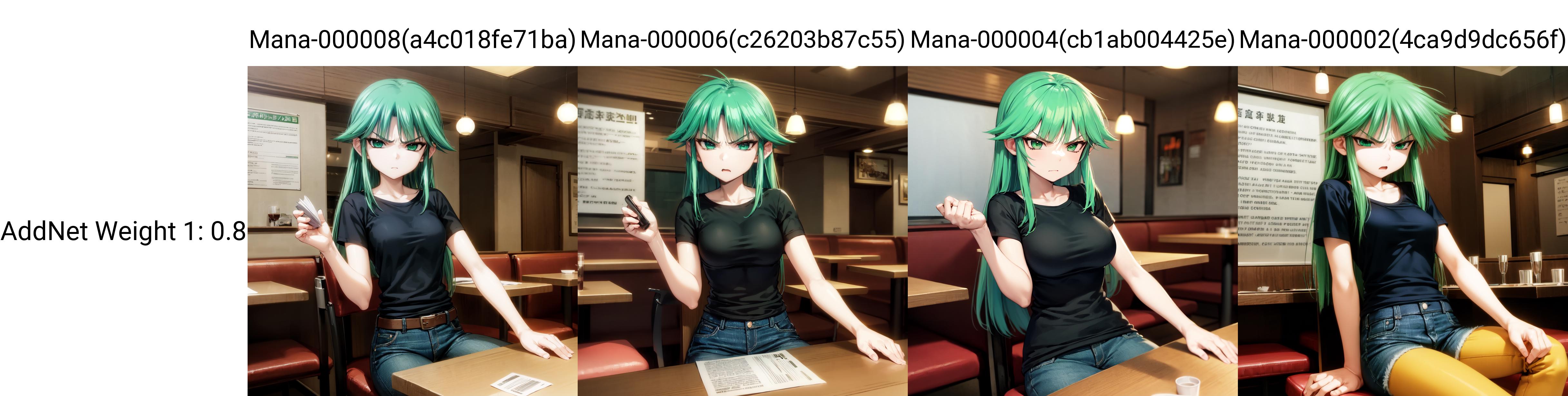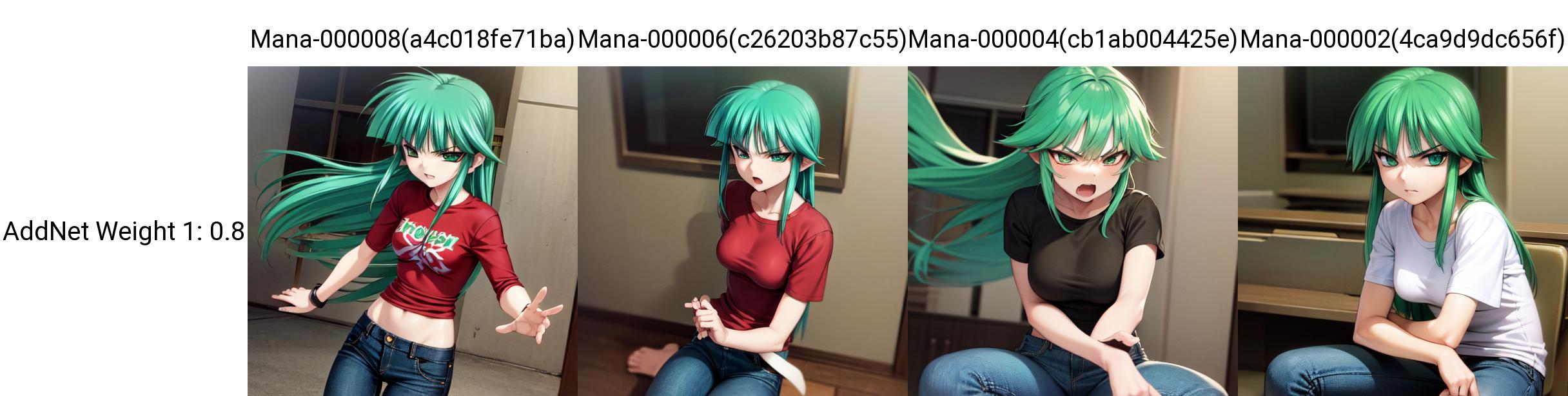 Trained on 16 images, mostly in the same outfit (yes I could use fanart, no im not going to). I think it's best to just use the main muv-luv model for her instead of this. I don't recommend bothering with this one due to clothing overfit unless you really want to for some reason.