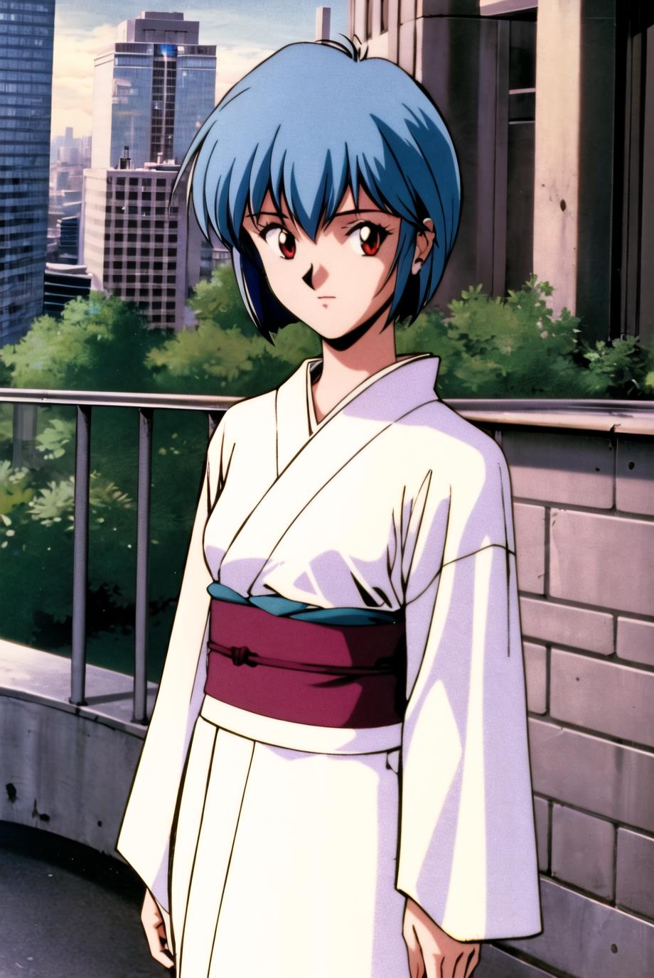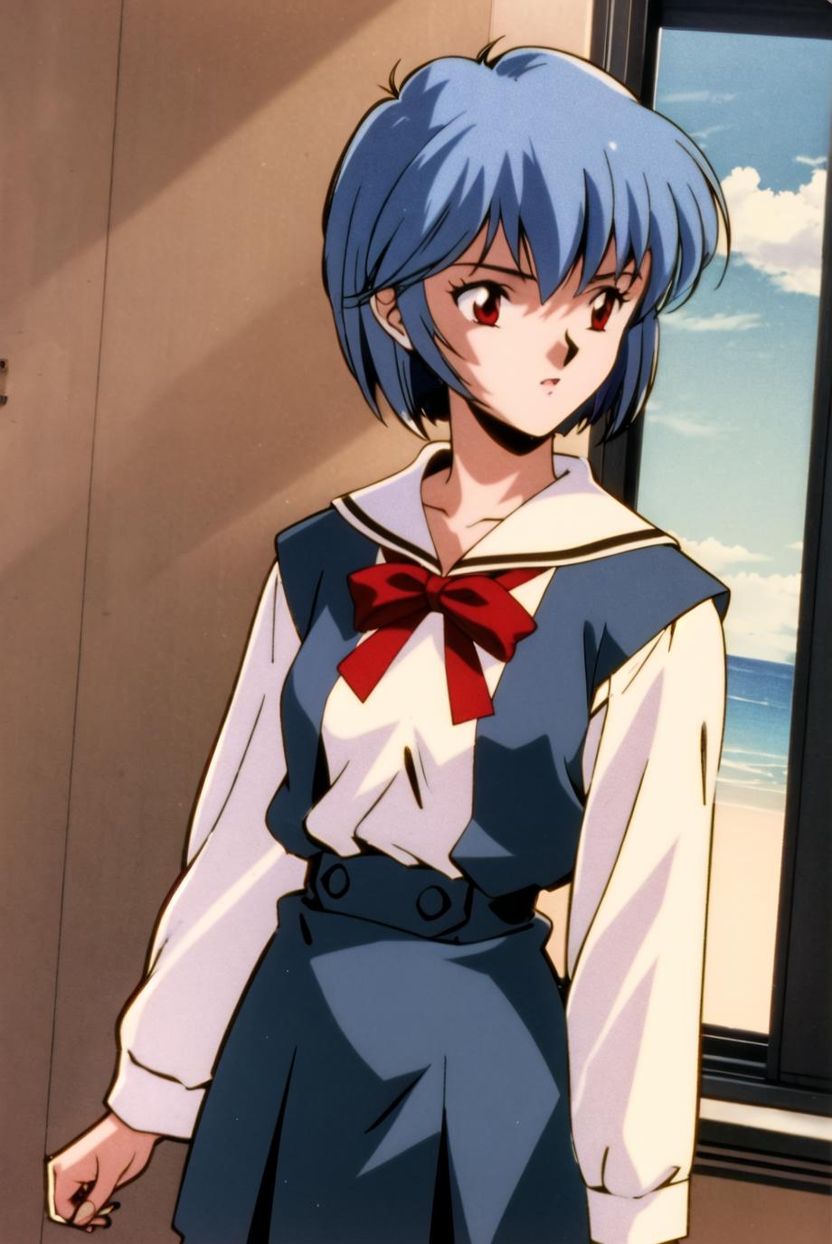 For her original outfit use the tags: pikkyayanami, 1girl, solo, looking at viewer, blue hair, short hair, bangs, red eyes, , small , white , plugsuit, , interface headset, pilot suit, full body