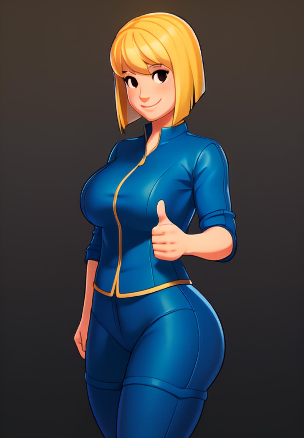 No Additional LoRA or Upscaling used. Used Prompt: <lora:vault-girl:0.8>, vault-girl, 1girl, solo,