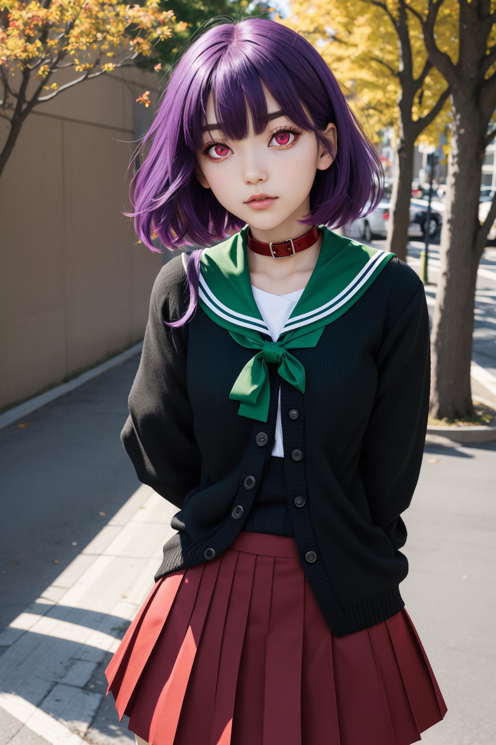 tama, hair between eyes, purple hair, short hair, (red eyes:1.5),