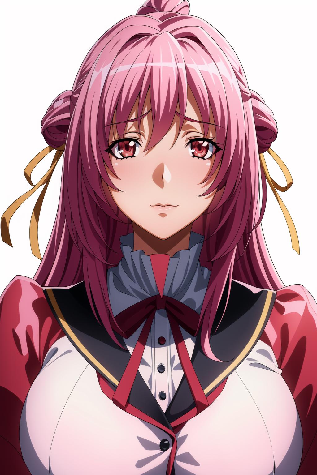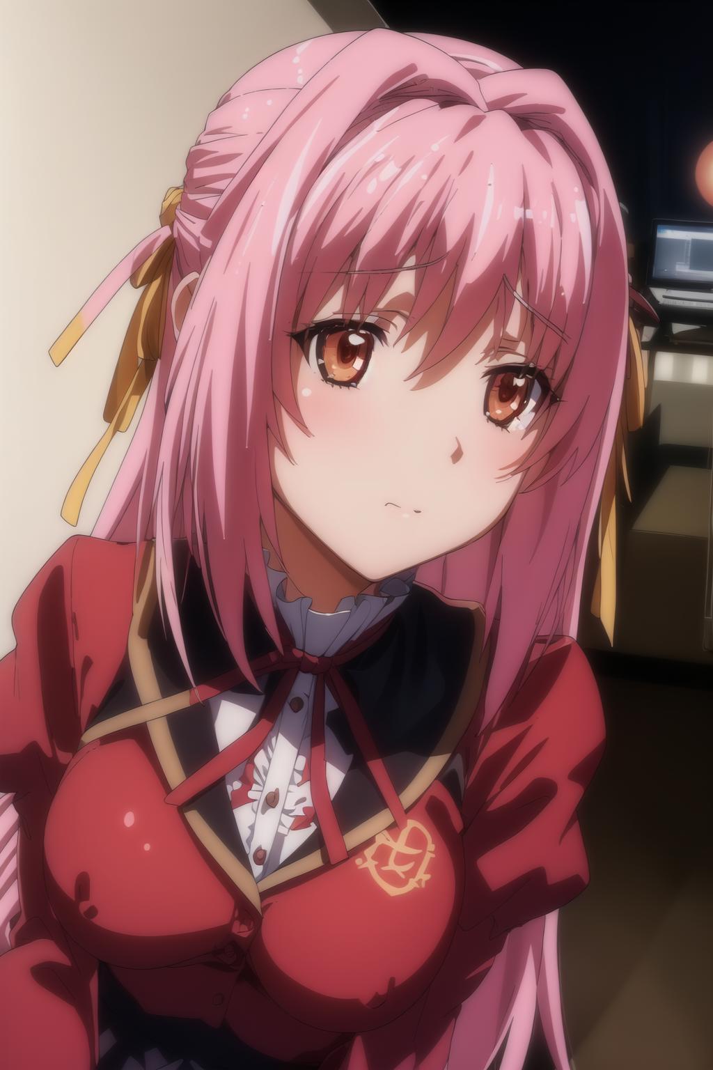 pink hair,red eyes,yellow ribbon,Long_hair,