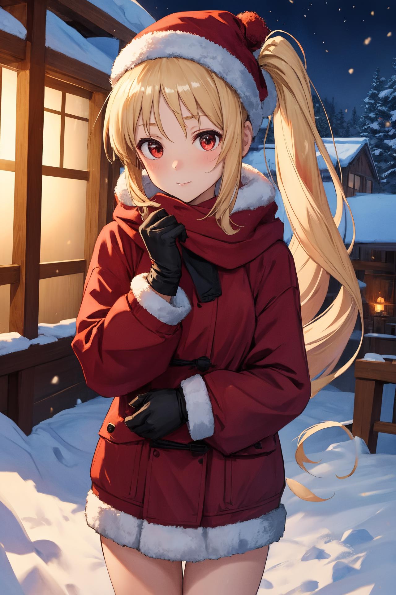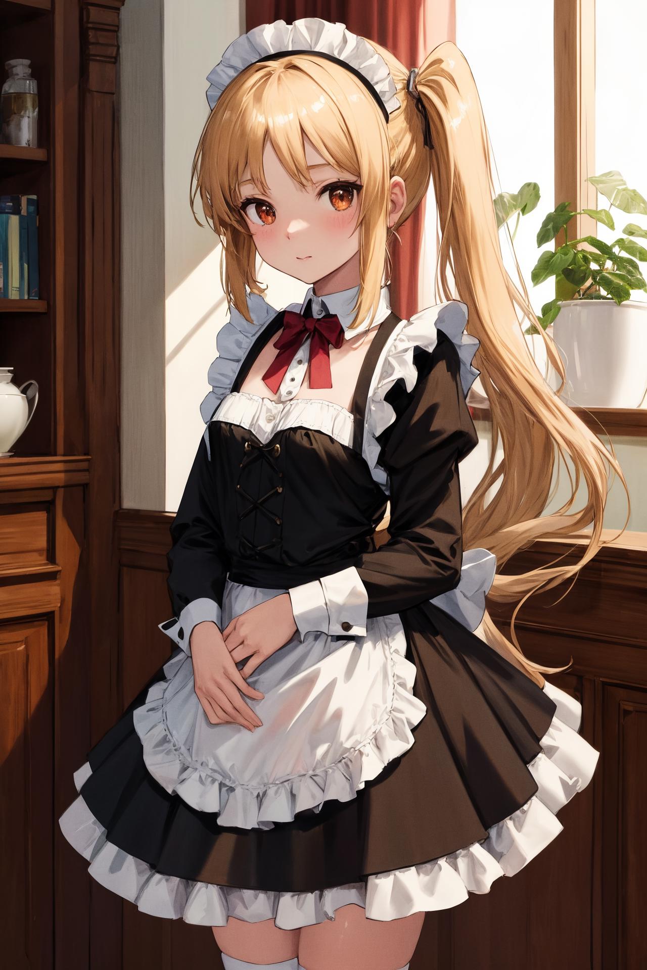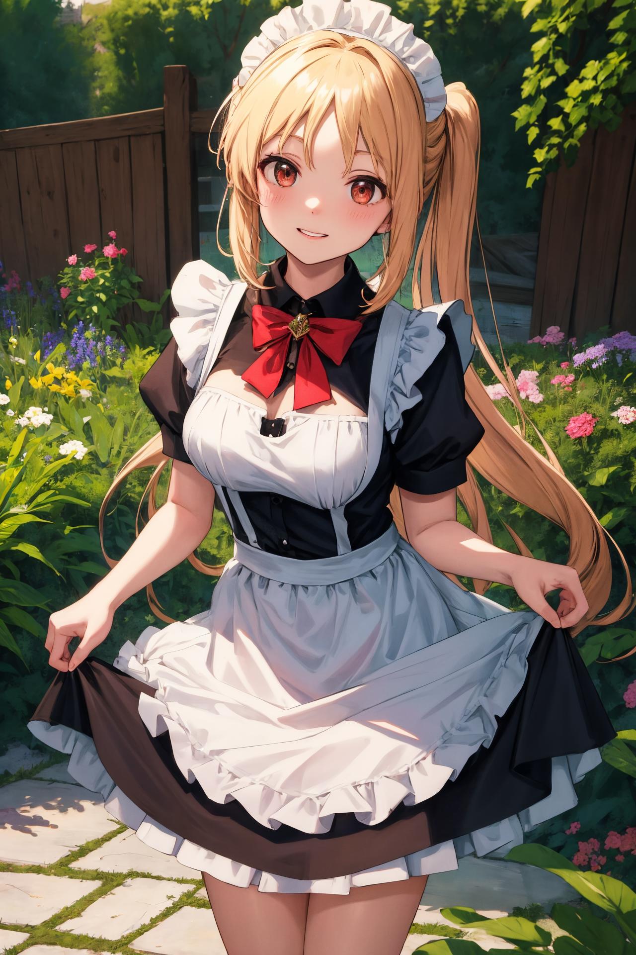 long hair, red eyes,side ponytail
