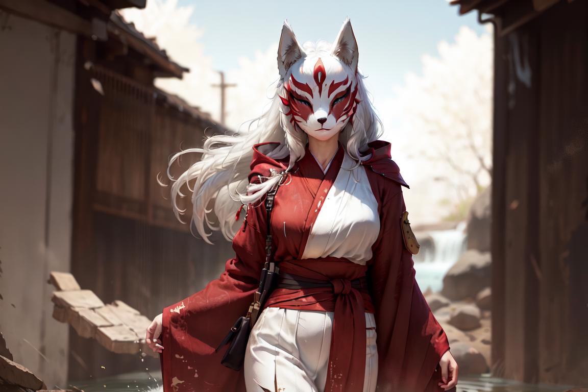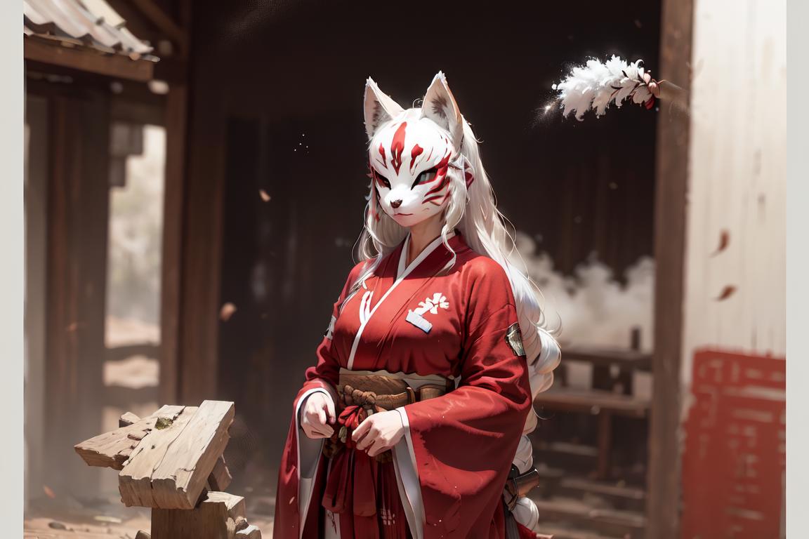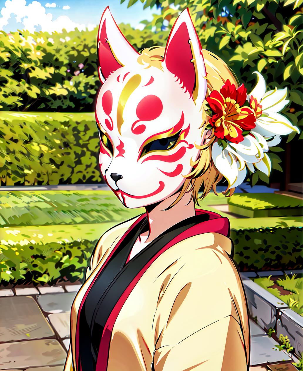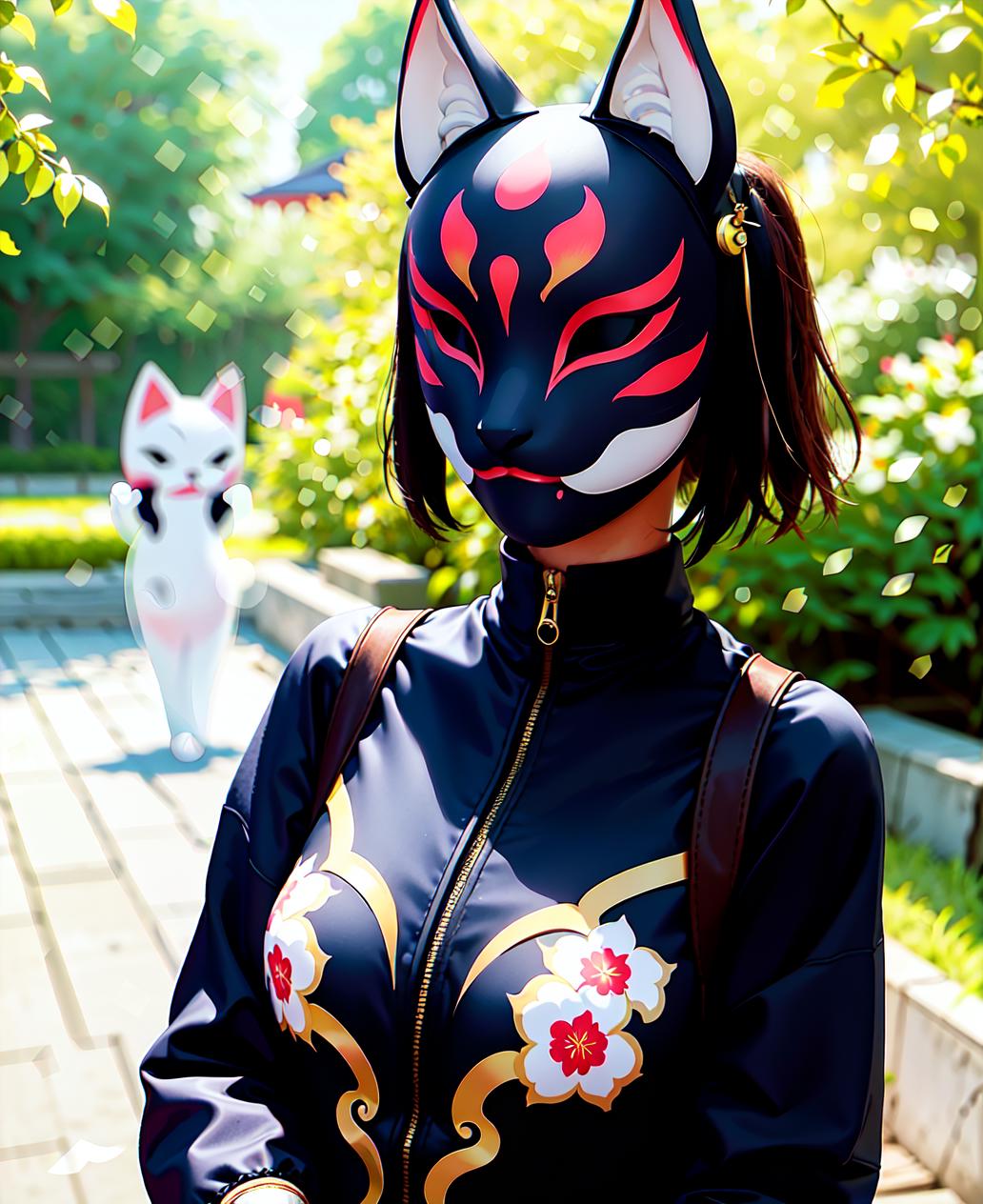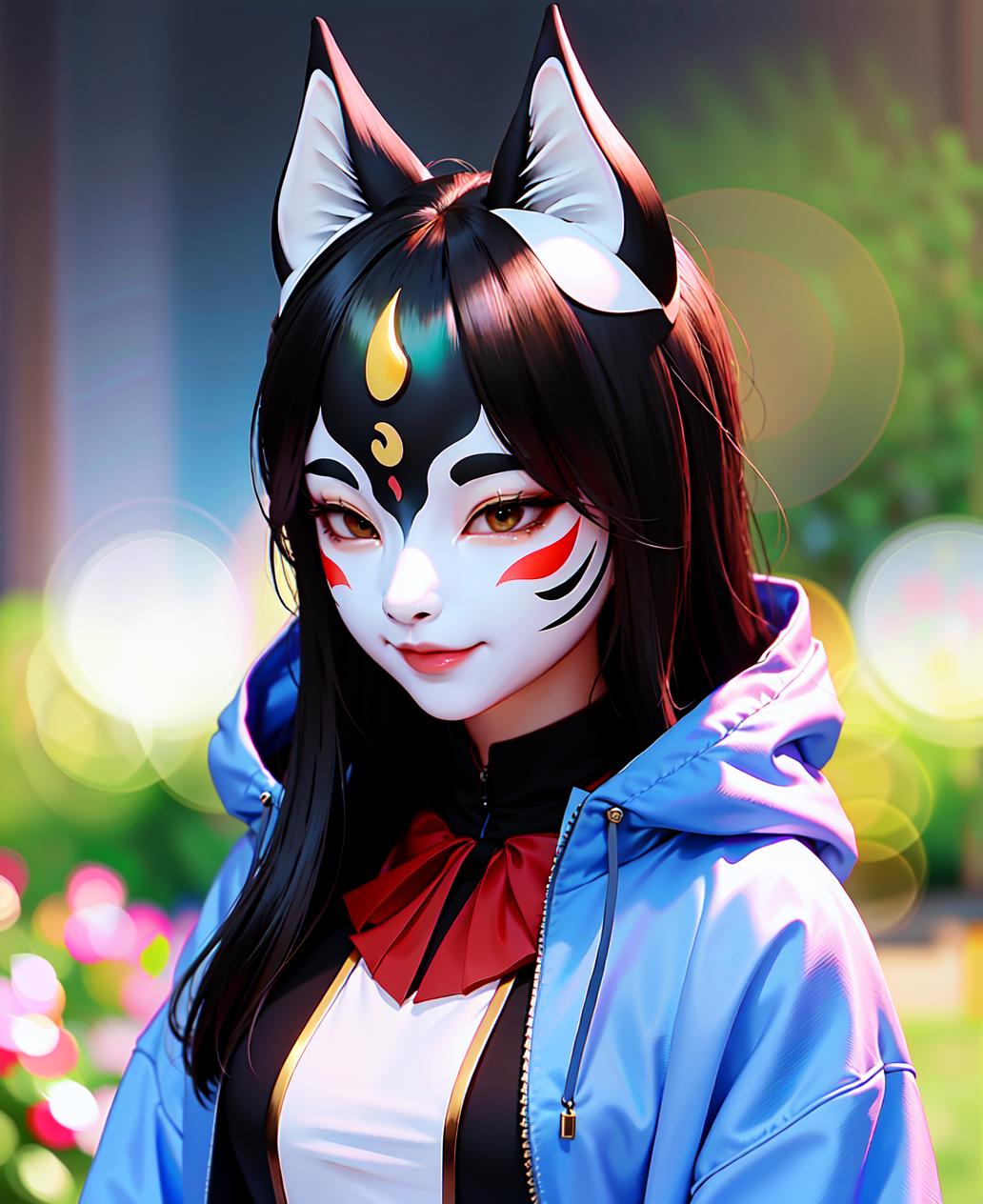 This is a LoRA that can wear a Japanese fox mask for AI character. When the weight is low (less than 0.6), the mask and face can be fused to create a fairy fox monster!