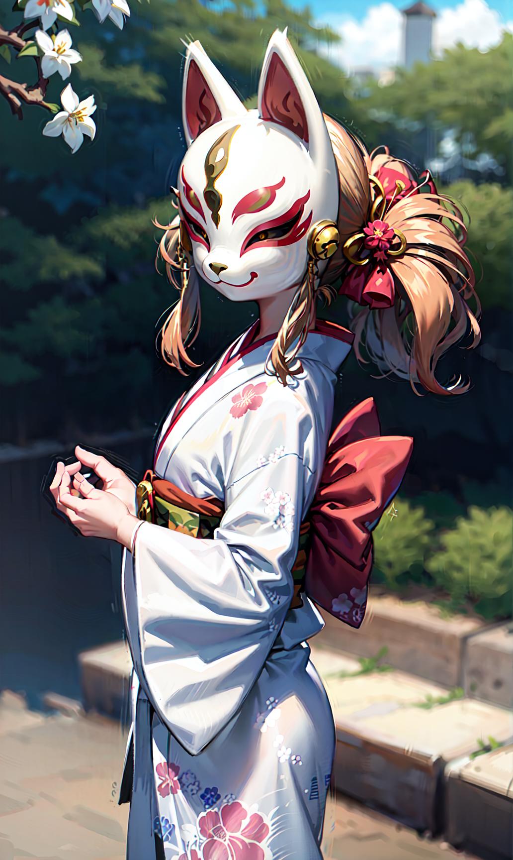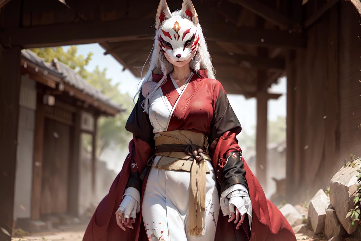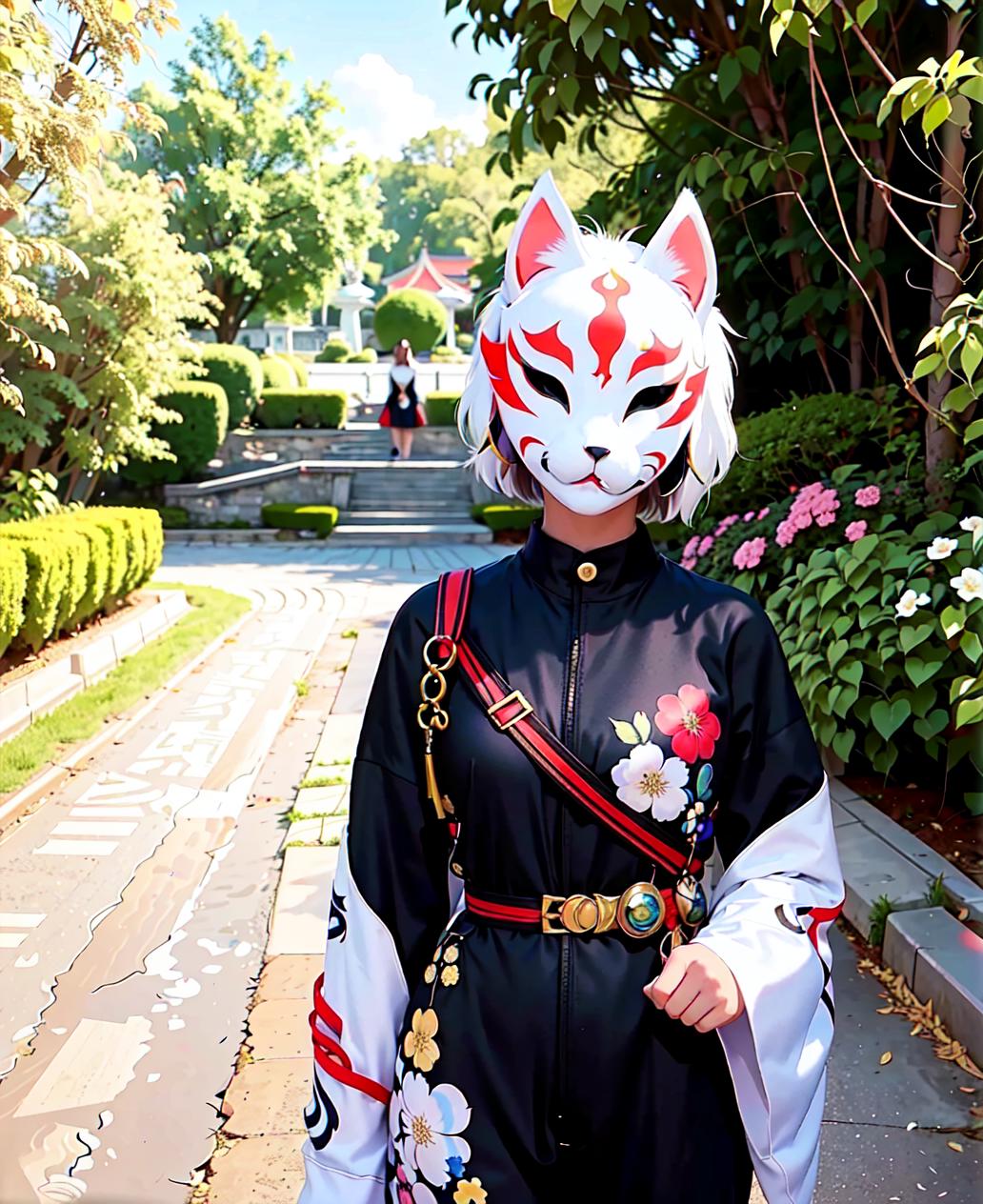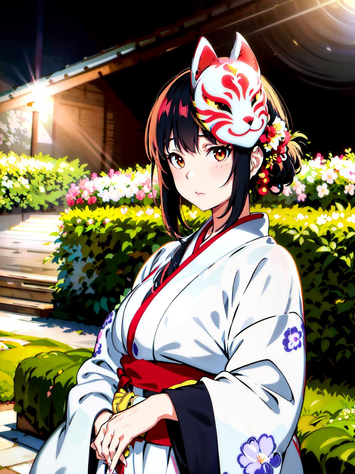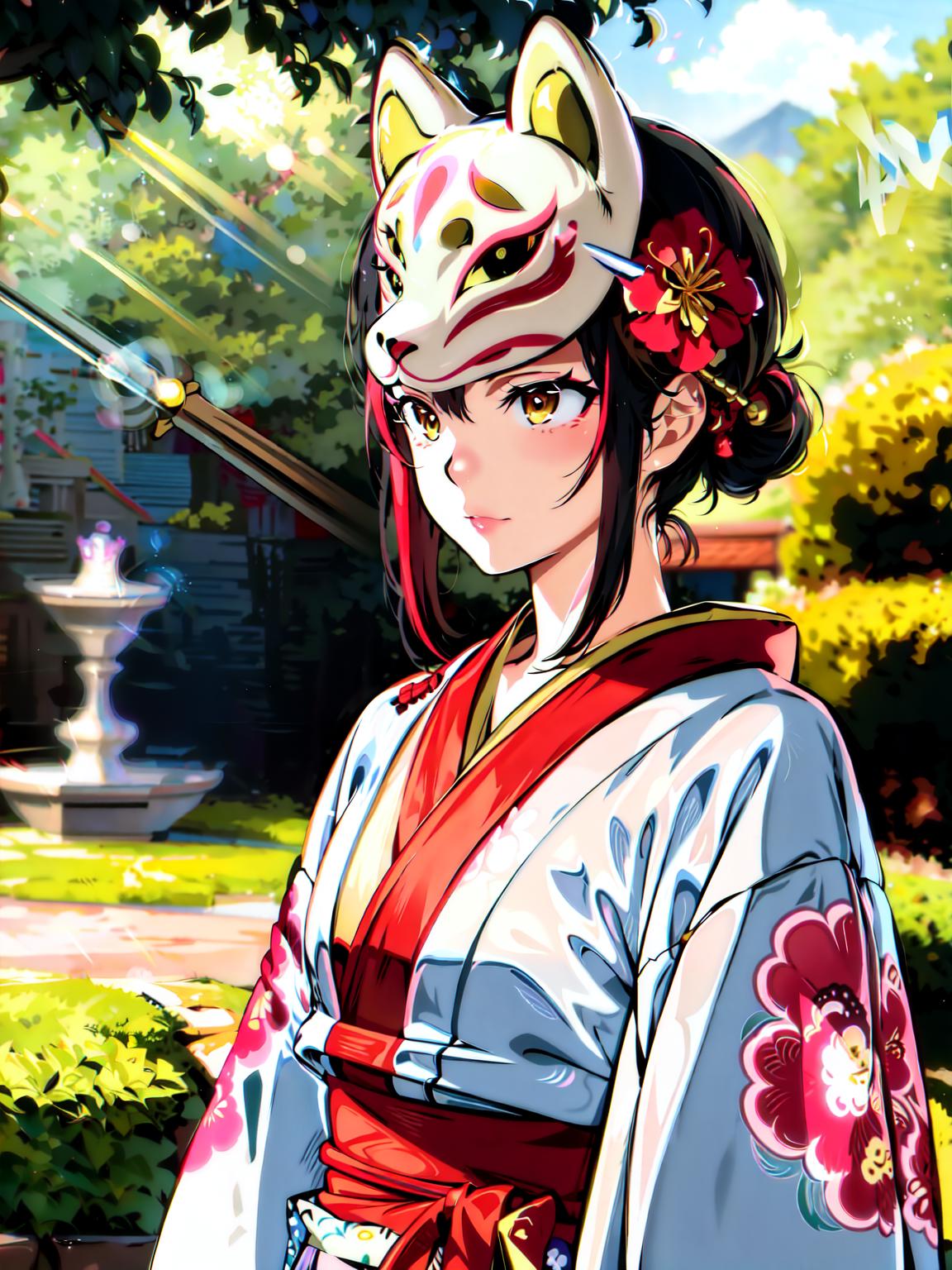 This is a LoRA that can wear a Japanese fox mask for AI character. When the weight is low (less than 0.6), the mask and face can be fused to create a fairy fox monster!