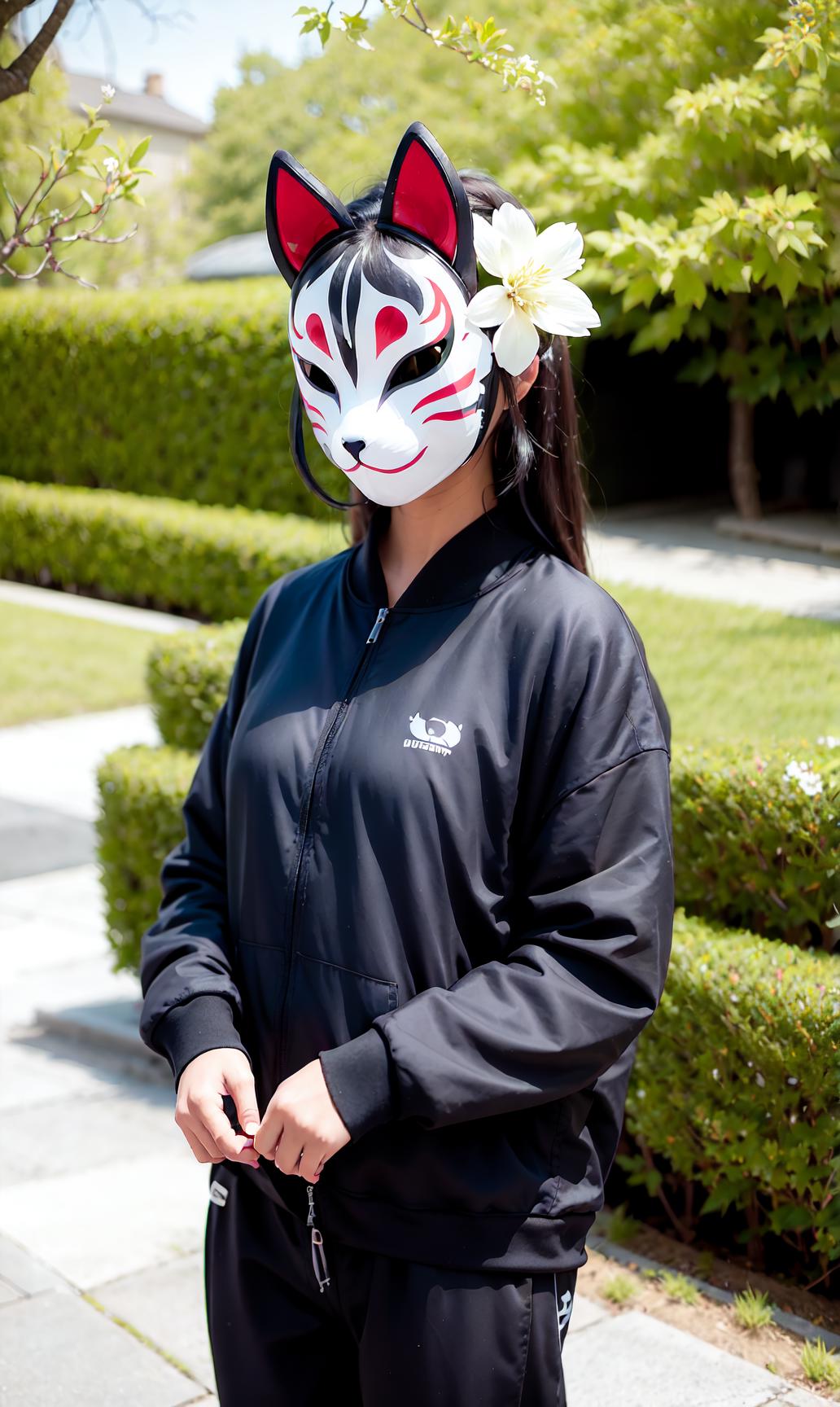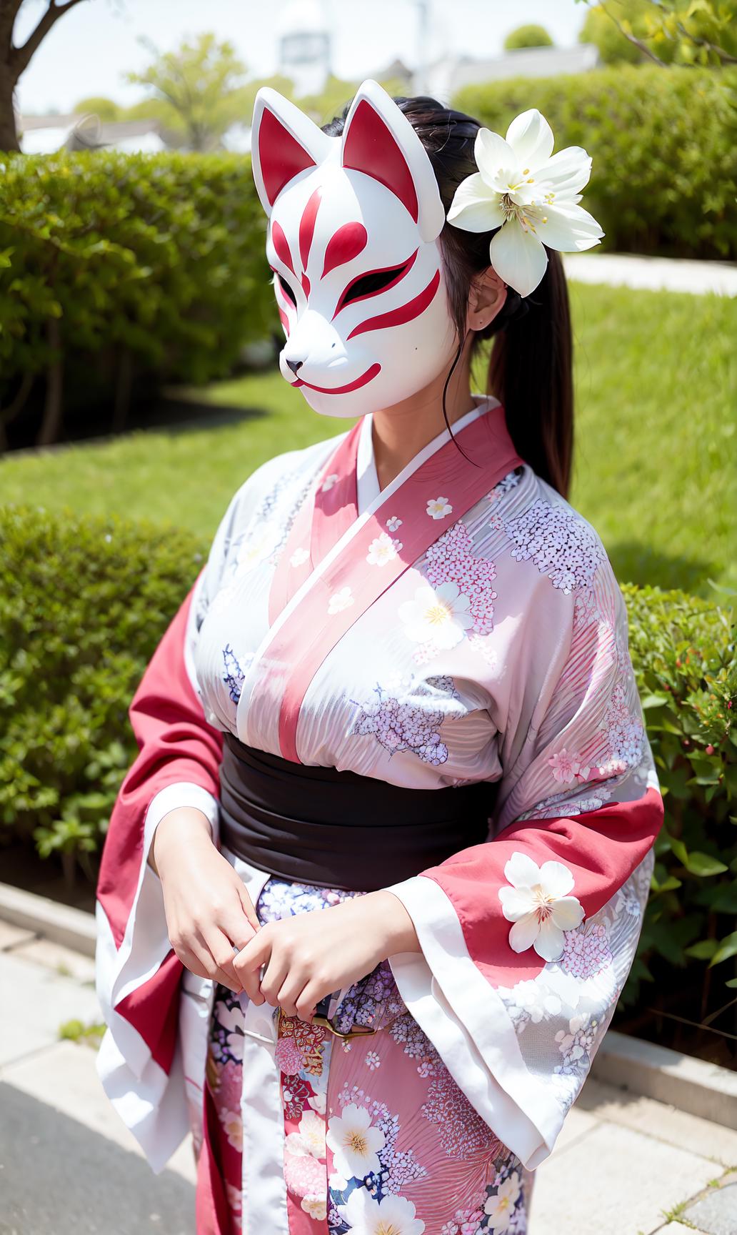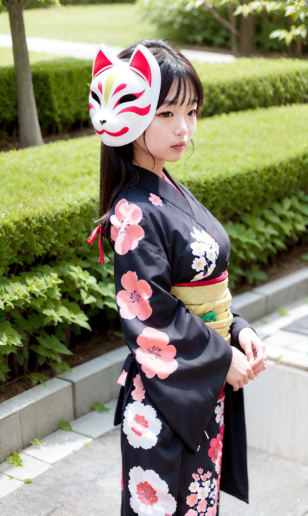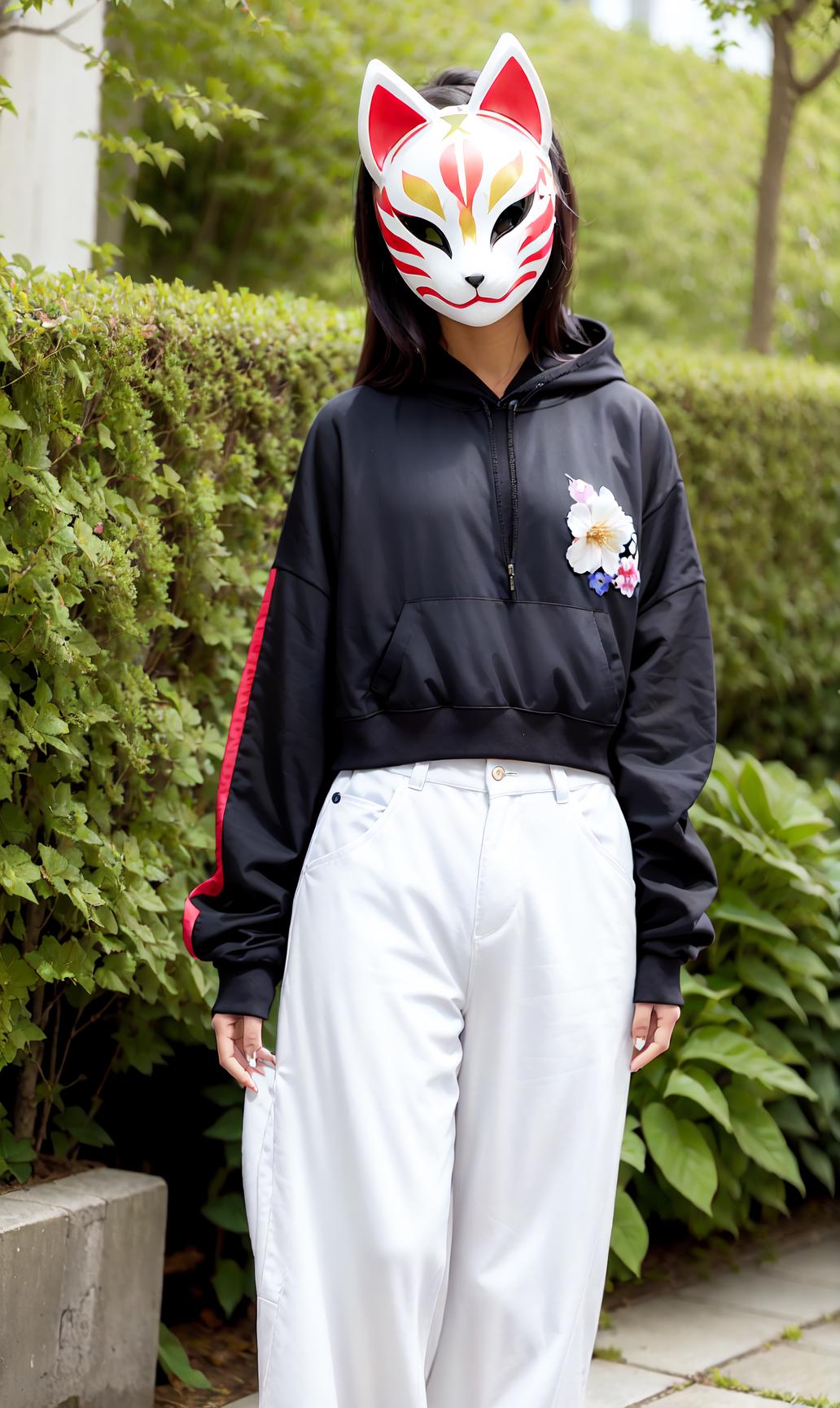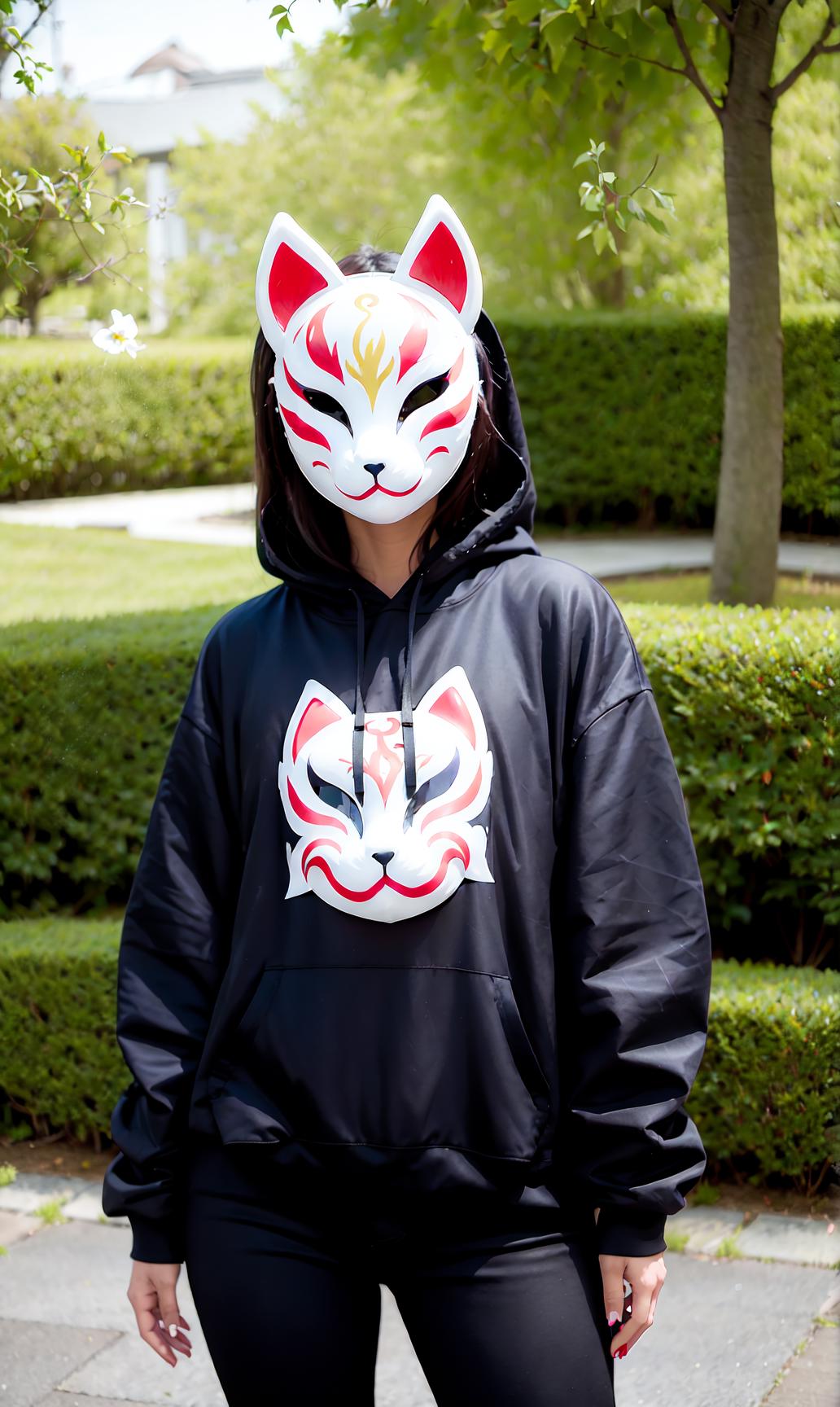 This is a LoRA that can wear a Japanese fox mask for AI character. When the weight is low (less than 0.6), the mask and face can be fused to create a fairy fox monster!