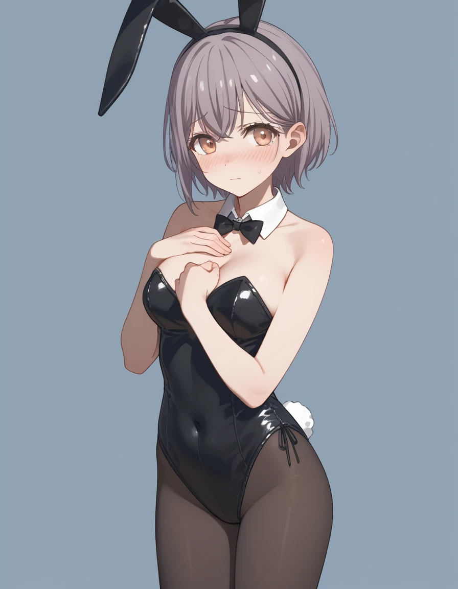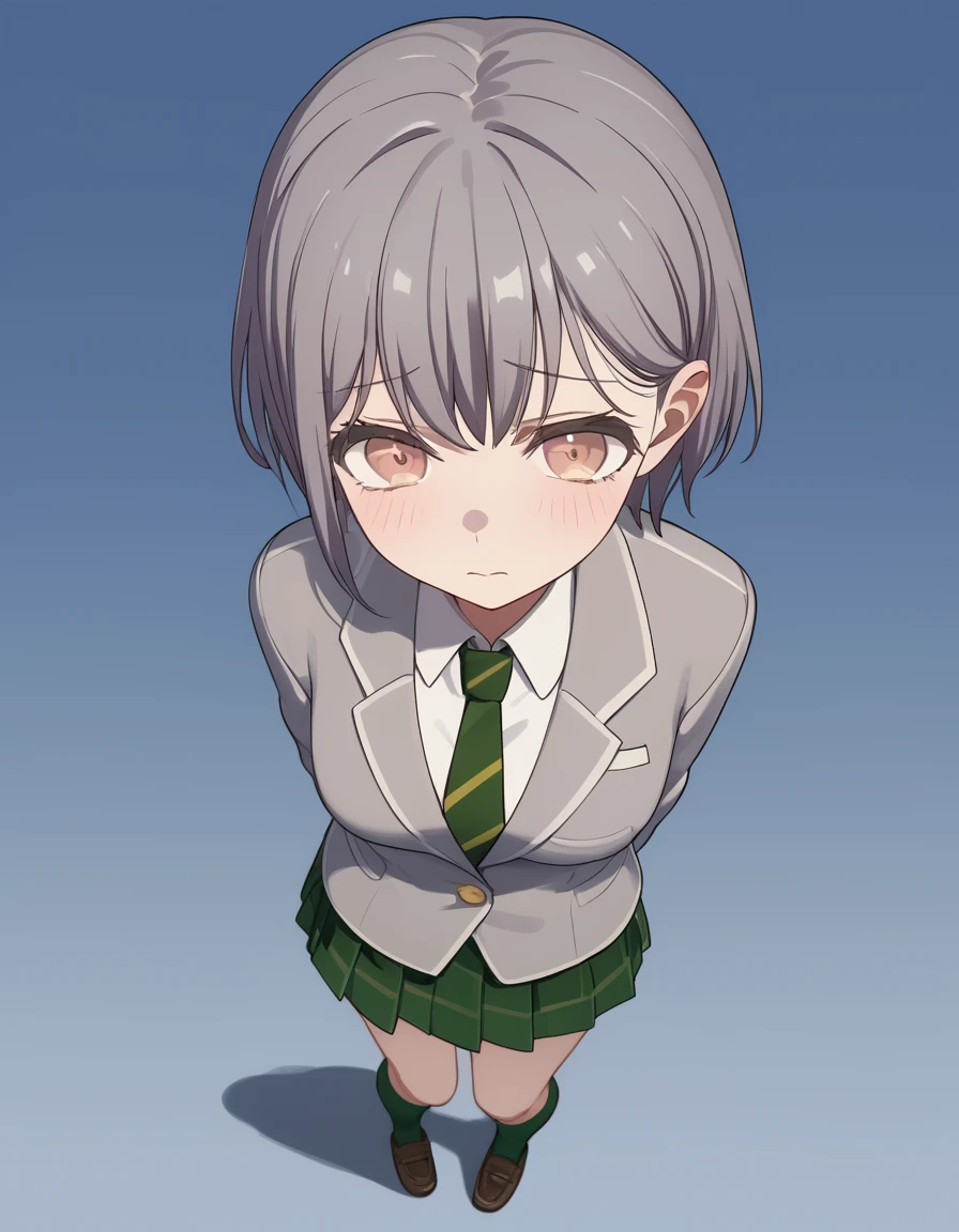 Trigger word: takamatsu tomori, short hair, grey hair, amber eyes, hair behind ears