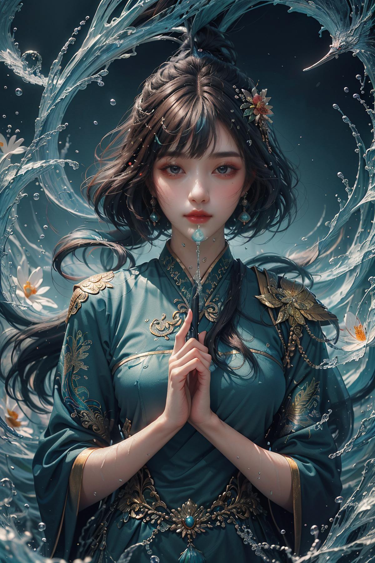 <lora:Water God Gonggongshi:0.8>,shuishen,gonggongshi,water,waves, (masterpiece,topquality,official art,beautiful and aesthetic:1.2)