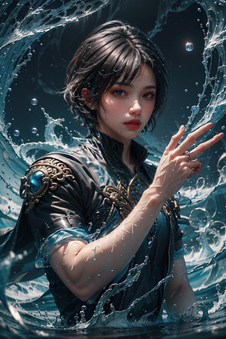 gonggongshi, water,Cast magic, cast water magic,water ball on the hand,,water,water ball on the hand