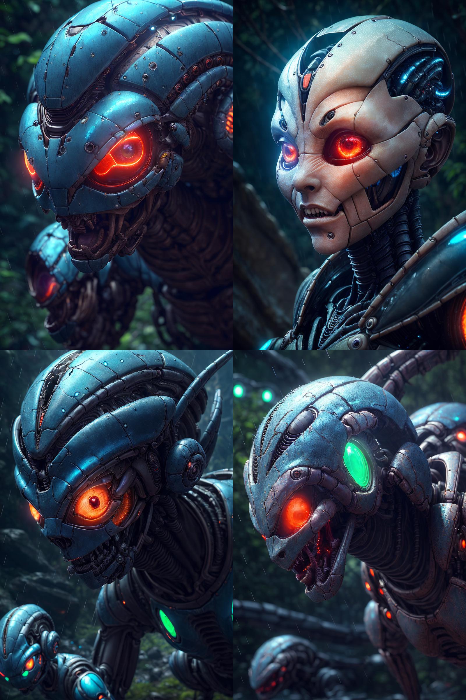 This is my model for personal use, but I thought others may want to try it out. It was mostly merged for detail and image quality, but I haven't done a whole lot of testing on its versatility. It does pretty decent portrait work, not quite as clean as Protogen, but good enough for my purposes. It does well with the scenarios I've fed it. I had to mix my own model, though, because my favorite embedding (Rina's Robo Faces, see samples above and at link) doesn't always work reliably on some newer merges. I still have to weight the tattoos heavily to get them to work on this mix, but the output is better than the merge I had previously been using. This merge includes the following models, so whatever tags work with them MIGHT work with this merge. I haven't tested. I was using Add Difference most of the way through the merge, so as not to overtune it with repeated weights.