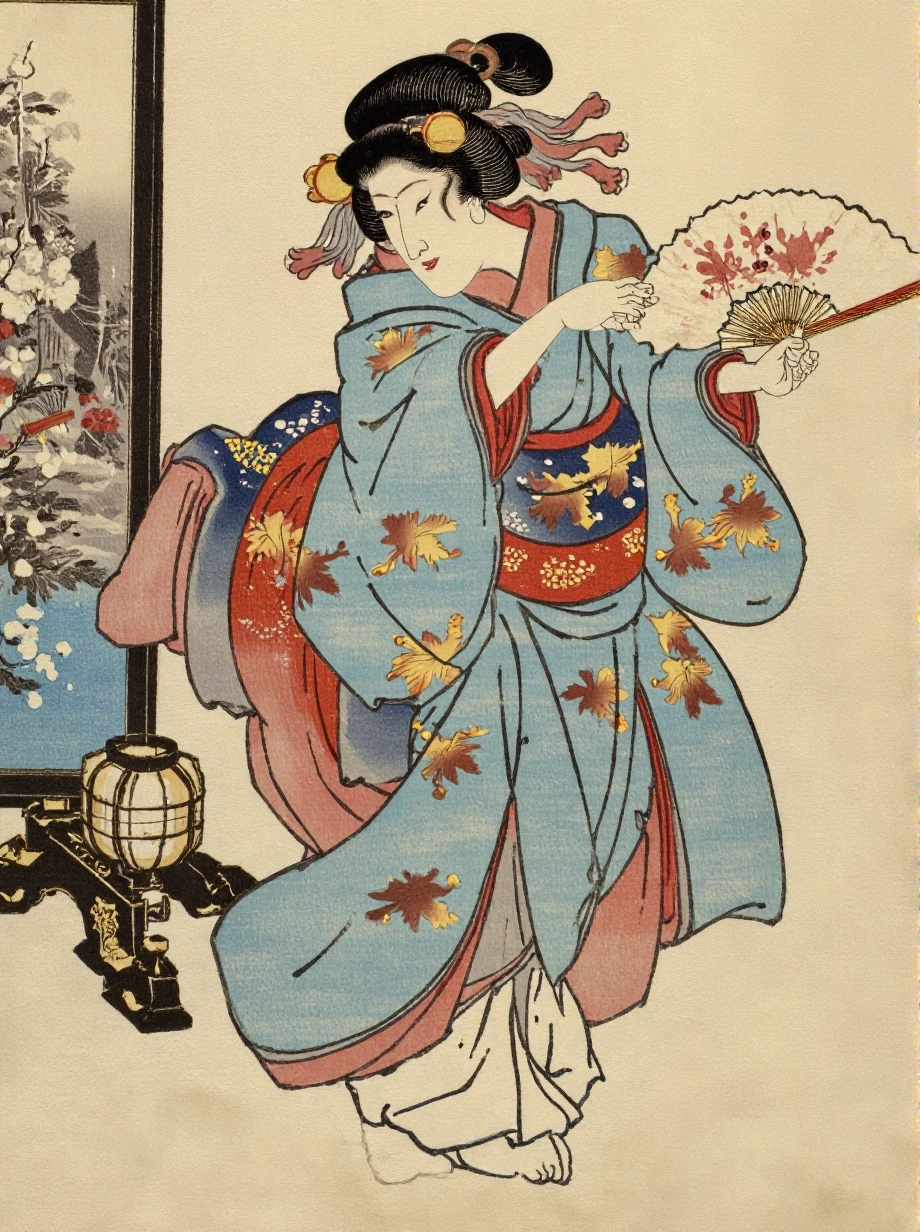 这个模型尤其适合创作具有日本传统艺术风格的人物画作,虽然在某些细节处理上存在局限,但通过合理的提示词组合,依然能够创作出极具特色的浮世绵风格作品。
