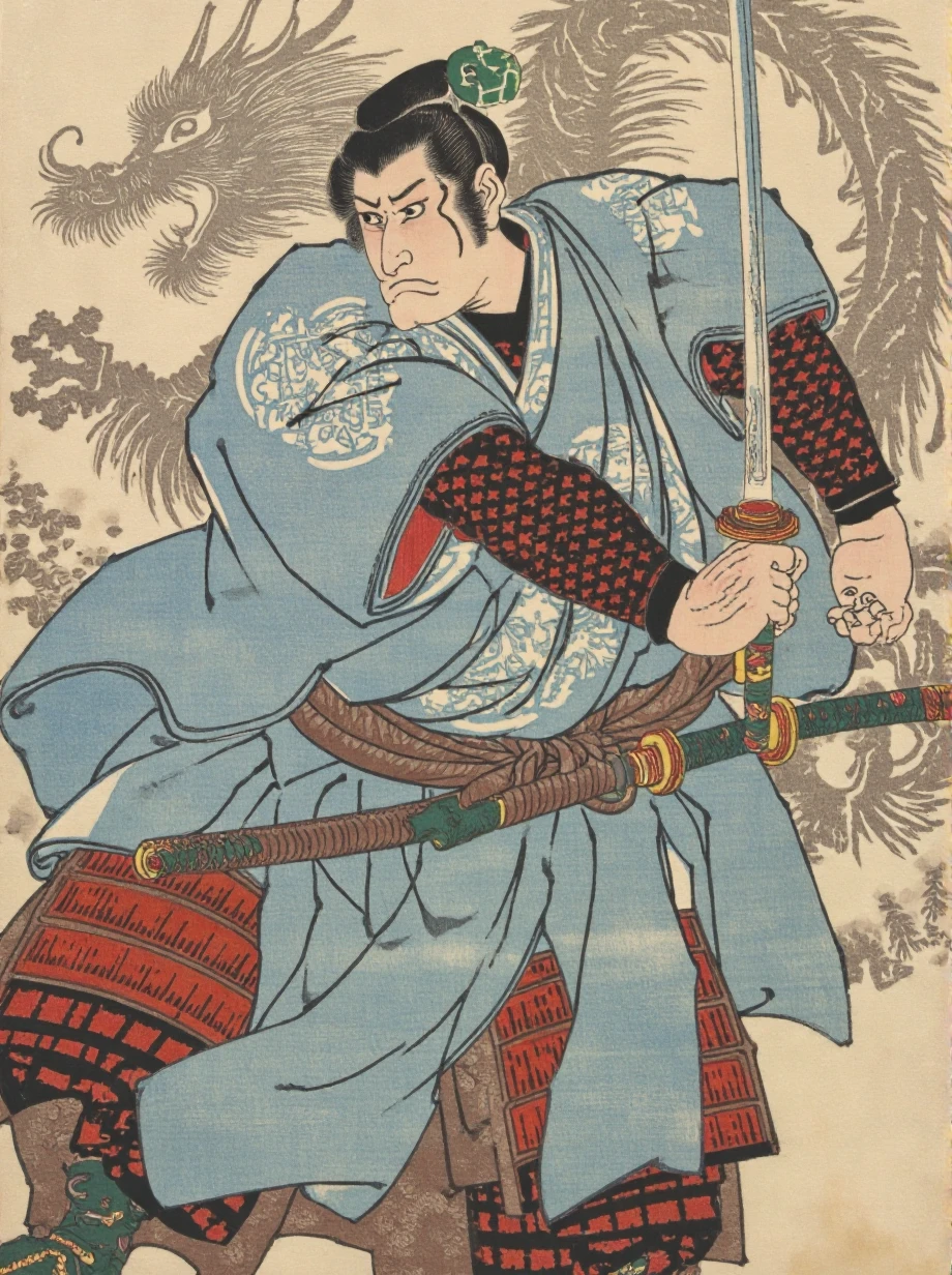 这是一个基于歌川国芳浮世绘风格训练的Lora模型,重点还原了浮世绘中的人物造型、服饰纹样和场景氛围。适合生成武士、艺伎等日本传统人物画作。