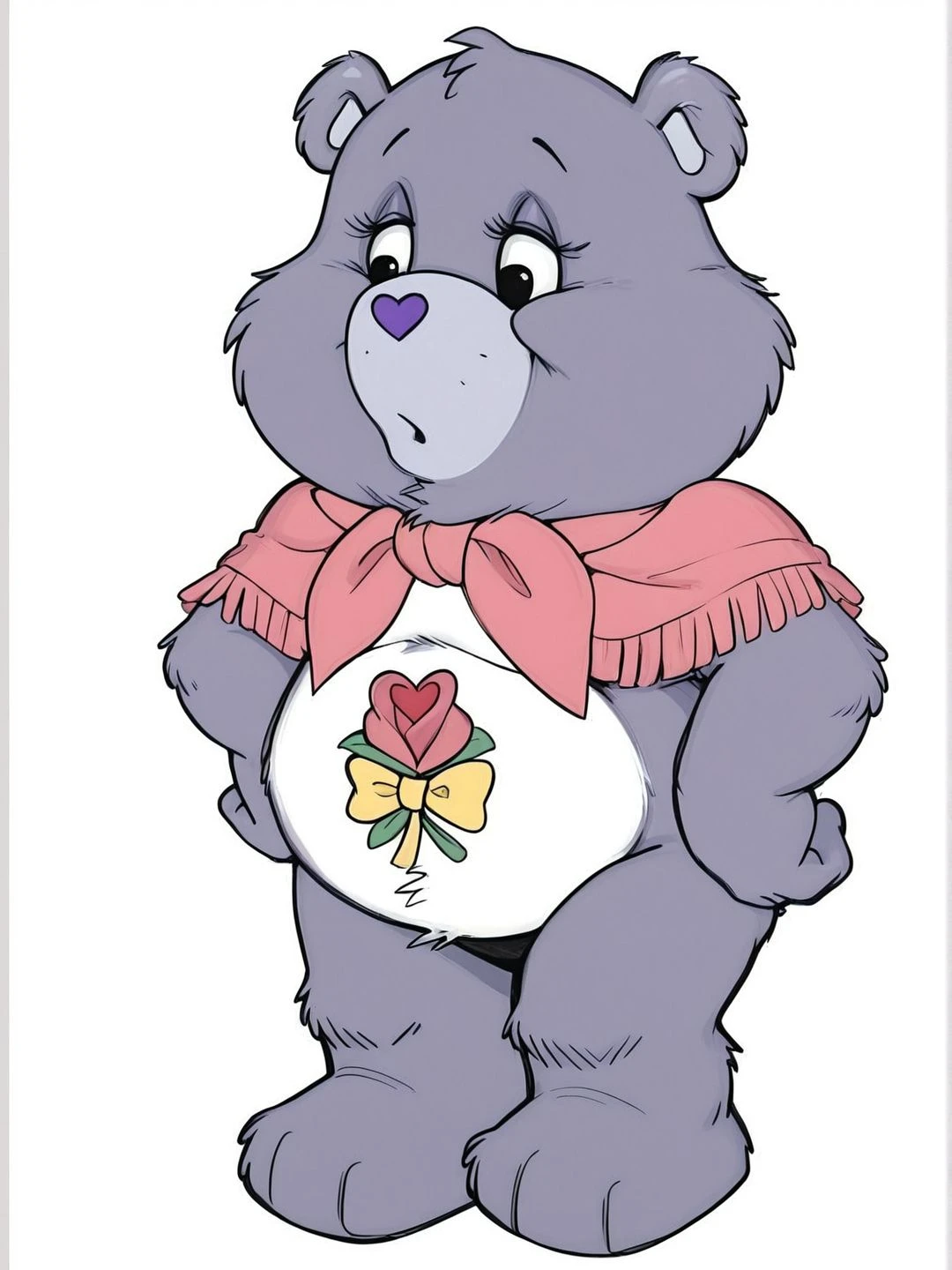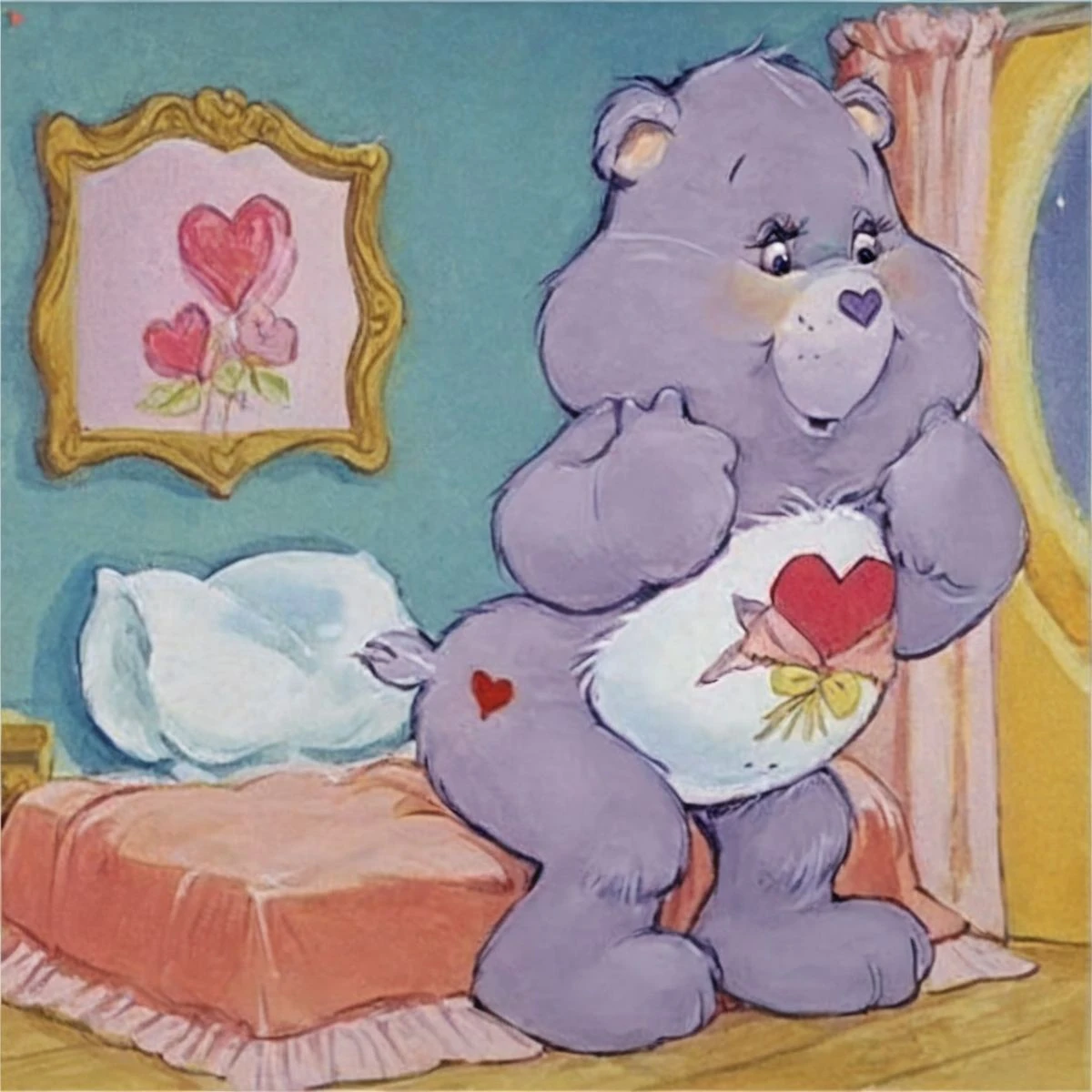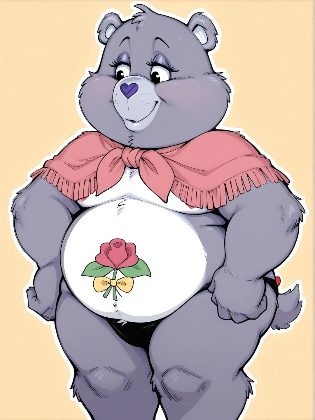 The "Granny" (i guess she's not that old) from the Care Bears cartoon of the 80's (i've watched it a lot, maybe too much), made with stills from the cartoon, some characters sheets from a Wiki and the only one good Rule34 image i've found.