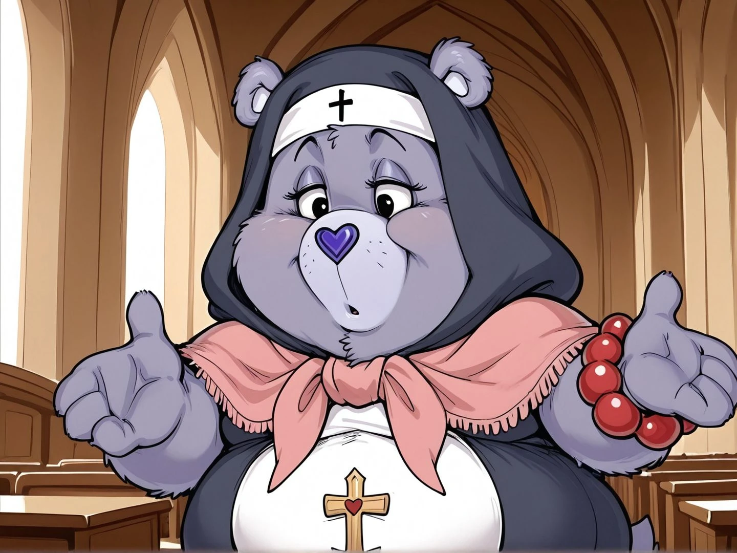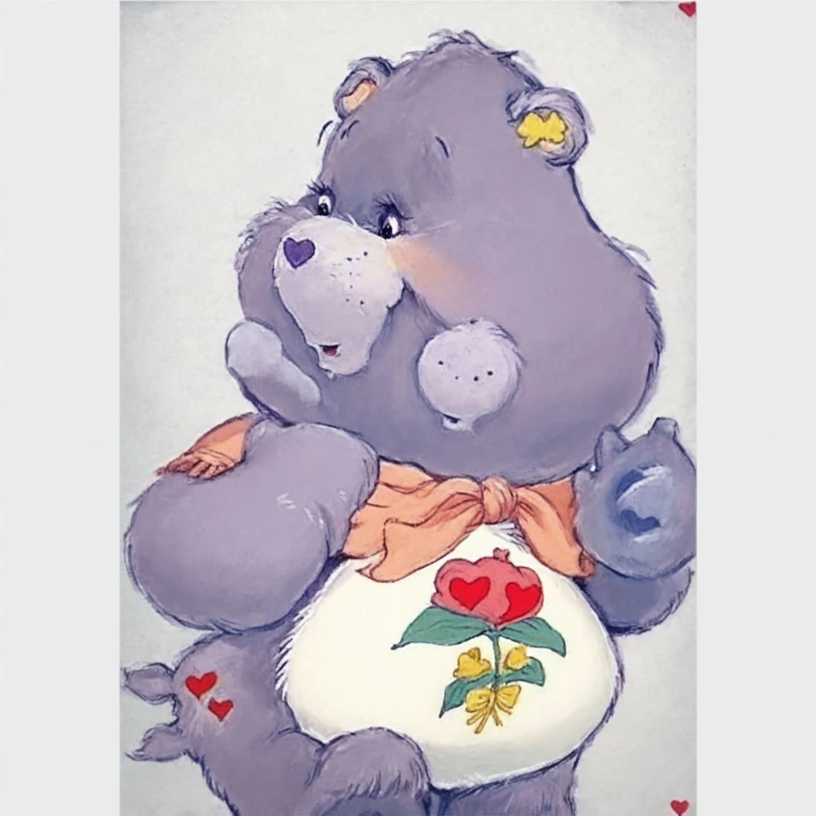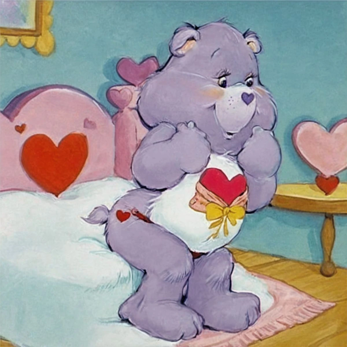 The "Granny" (i guess she's not that old) from the Care Bears cartoon of the 80's (i've watched it a lot, maybe too much), made with stills from the cartoon, some characters sheets from a Wiki and the only one good Rule34 image i've found.
