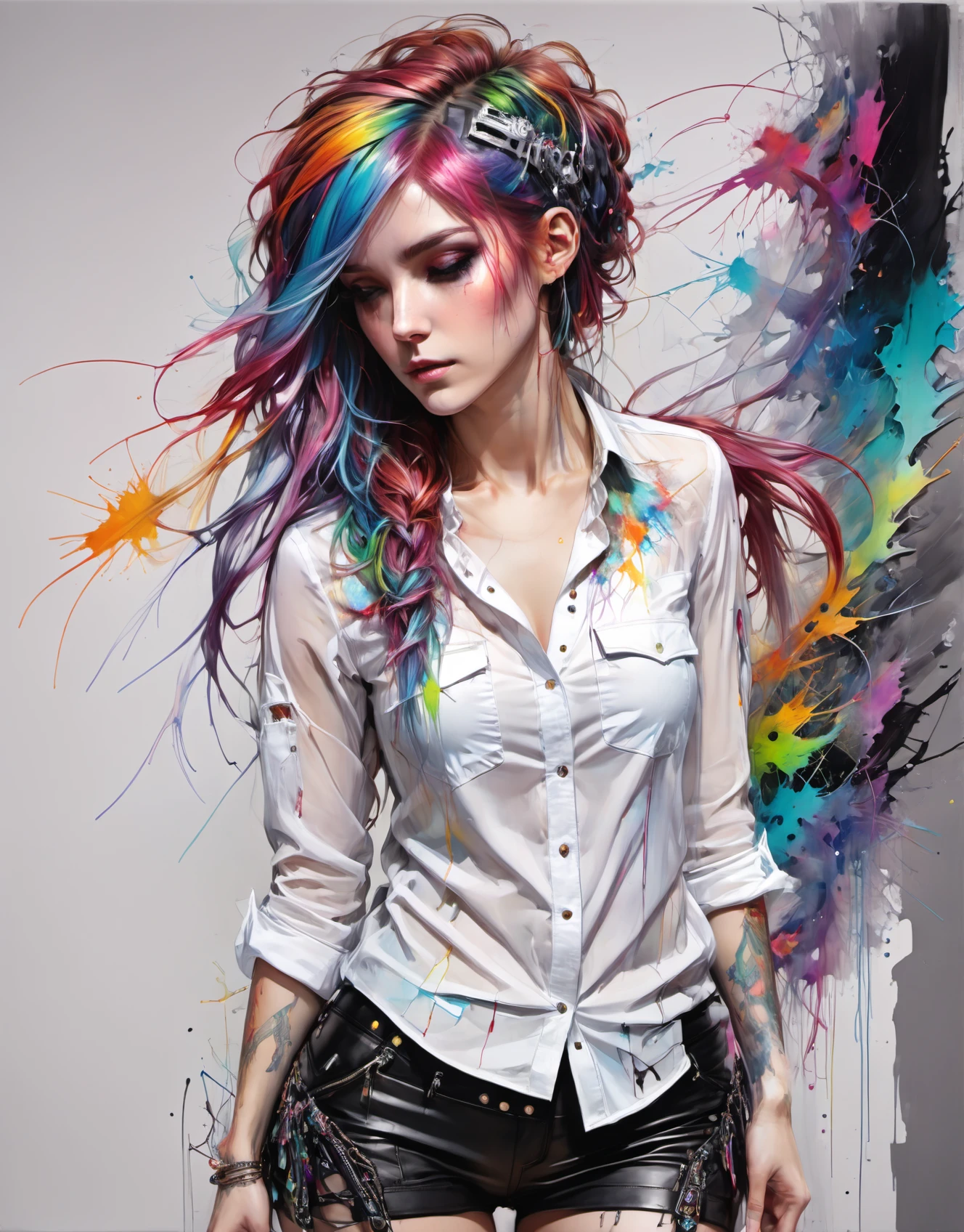 Triggerwords: crgf, messy, abstract, oil painting, in the style of carne griffiths