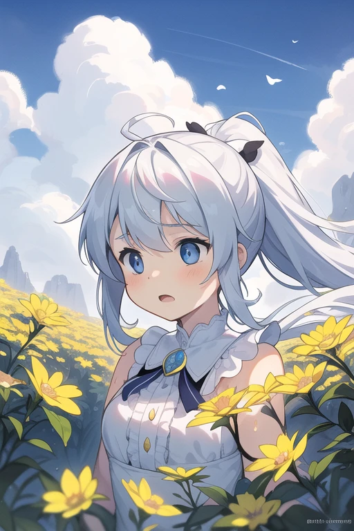 (tags:{{masterpiece}},best quality,illustration,1 male kid,prince,rose,floating short hair,yellow hair,long yellow scarf,green clothes,rose,closeup,chibi)