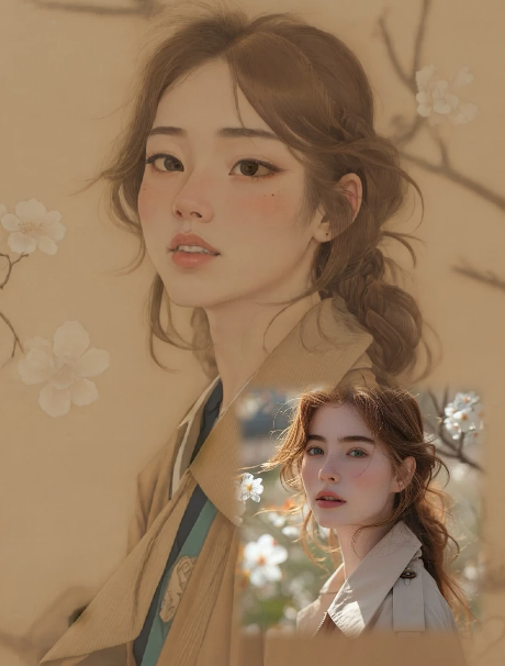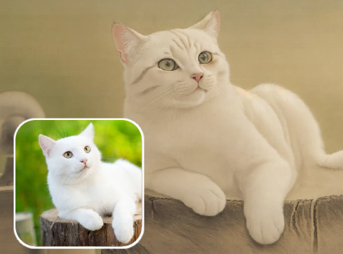 当现代遇见古风画卷特效,会产生怎样的美妙画卷,快用照片试试吧(用提示词描述动物的品种和花色,尤其是纯色的需要强调没有花纹)