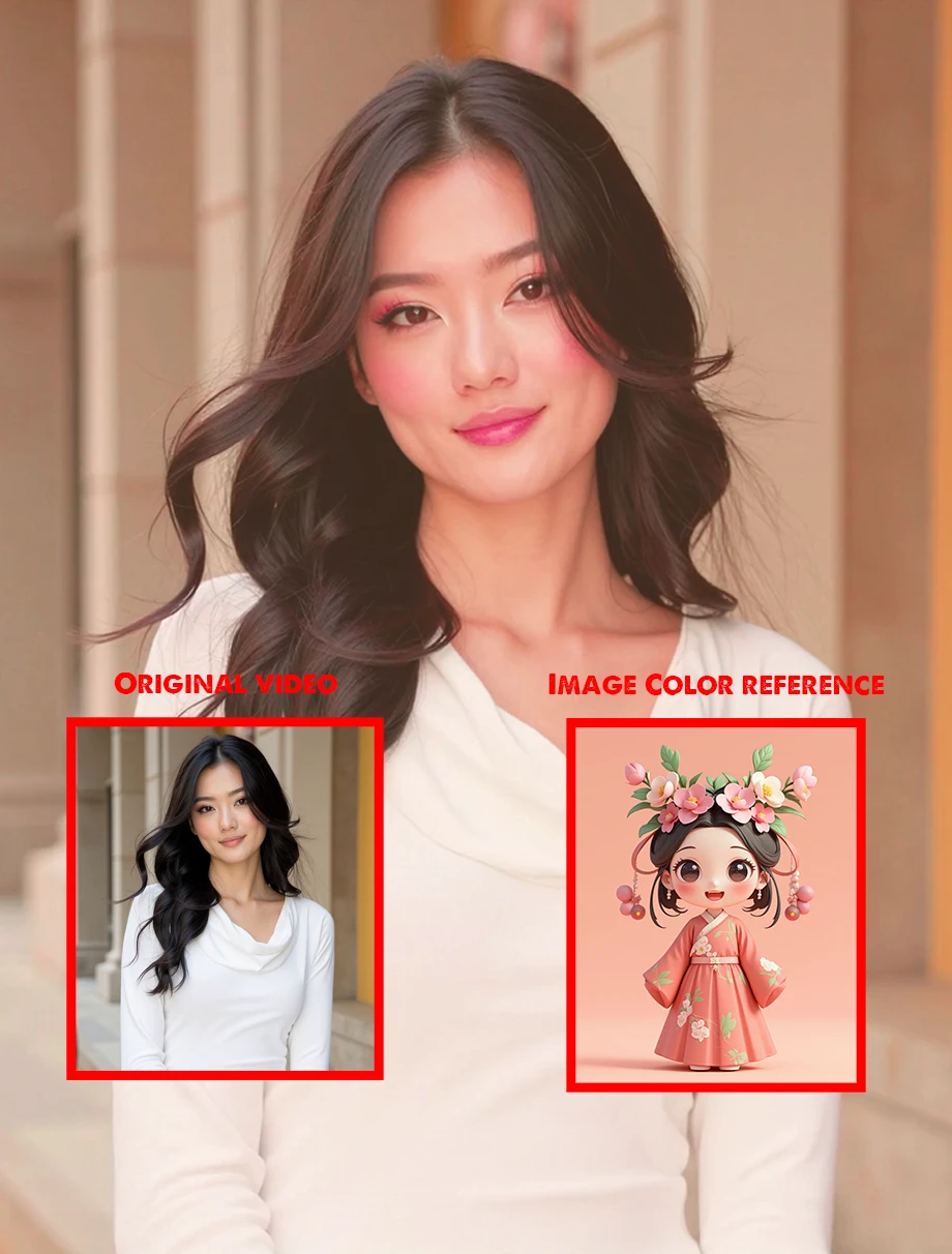 เอฟเฟกต์การกรองวิดีโอด้วยอ้างอิงสีของภาพจะใช้จานสีของภาพอ้างอิงกับวิดีโอ, สร้างความมั่นใจในการจัดเกรดสีและการถ่ายโอนสไตล์ที่สม่ำเสมอตลอดทั้งวิดีโอ .