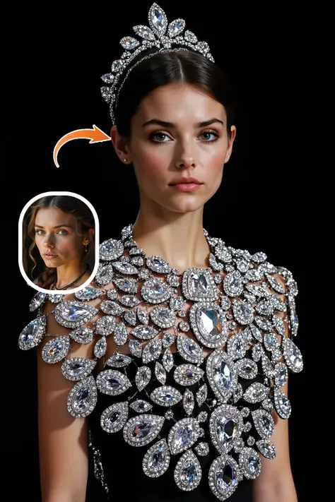 เครื่องประดับเพชรที่ผนึกนี้เป็นเพียงงานศิลปะที่เดินเล่น! 👑อยากสร้างภาพสาวเครื่องประดับเพชรแบบเดียวกัน? โปรดอัปโหลดรูปภาพแล้วคลิก สร้าง. จะกลายเป็นภาพที่น่าทึ่งมากในเวลาเพียง 120 วินาที! 📷