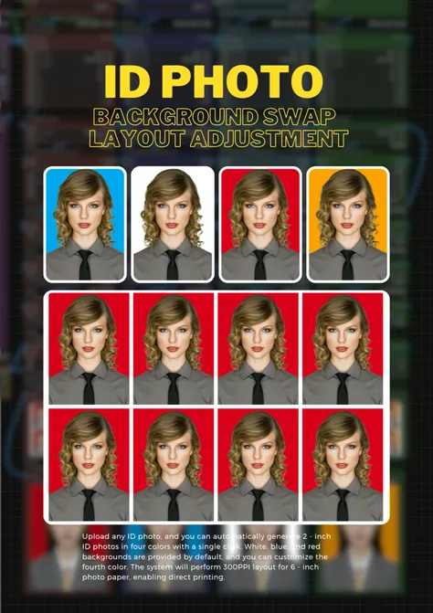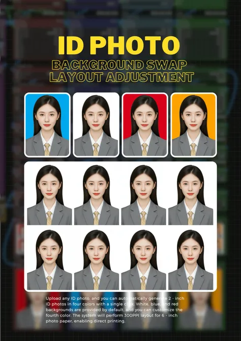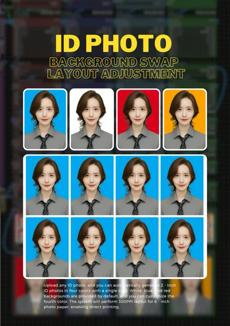 เพียงอัปโหลดรูปภาพ ID ใดก็ได้、คลิก 1 ภาพ ID ขนาด 2 นิ้ว 4 สี จะถูกสร้างขึ้นโดยอัตโนมัติใน 1 ครั้ง。cvln7hle878c73auv32g、น้ำเงิน、สีพื้นหลังสีแดงพร้อมใช้งาน、สีที่สีที่สีที่สามารถปรับแต่งได้。ระบบ 300 PPI บนกระดาษภาพถ่าย 6 นิ้ว、สามารถพิมพ์ได้โดยตรง。หากคุณไม่มีID、สร้างได้อย่างง่ายดายโดยใช้แอพอื่นโดยคลิกที่ลิงค์ด้านล่างสามารถ 。