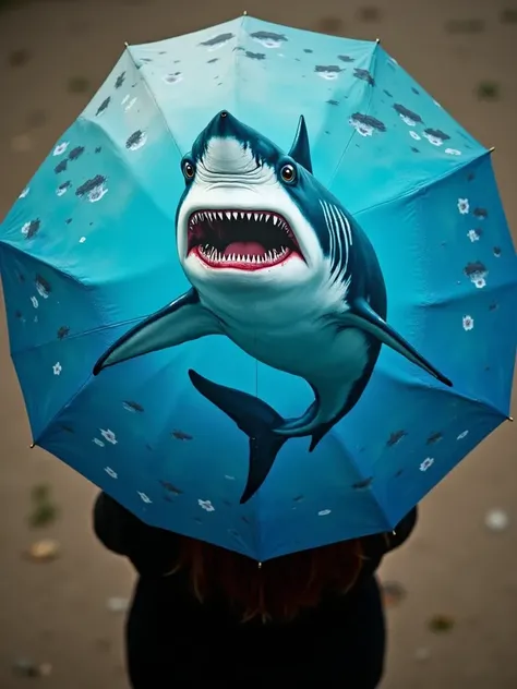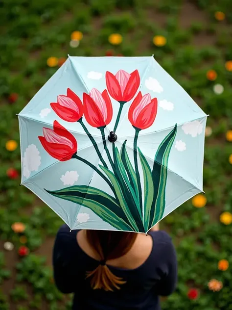 适用于将动物或动漫人物转化为伞面艺术的创意风格,ร่ม ศิลปะ(ร่ม_ลักษณะ)以"雨伞上的艺术"为核心,融合概念艺术与装饰画美感,强调构图简洁、场景静谧与人物凝视感。