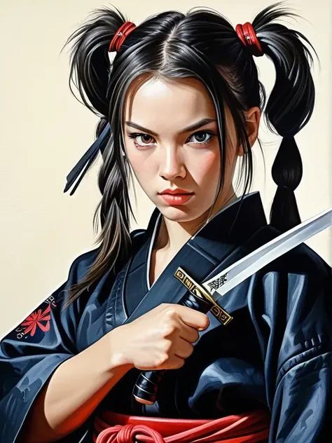 สวยงามหญิงสาวรูปลักษณ์ยุโรปถือมีดซามูไรในมือ