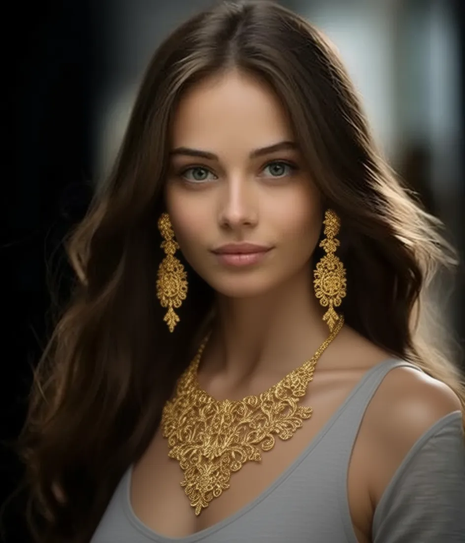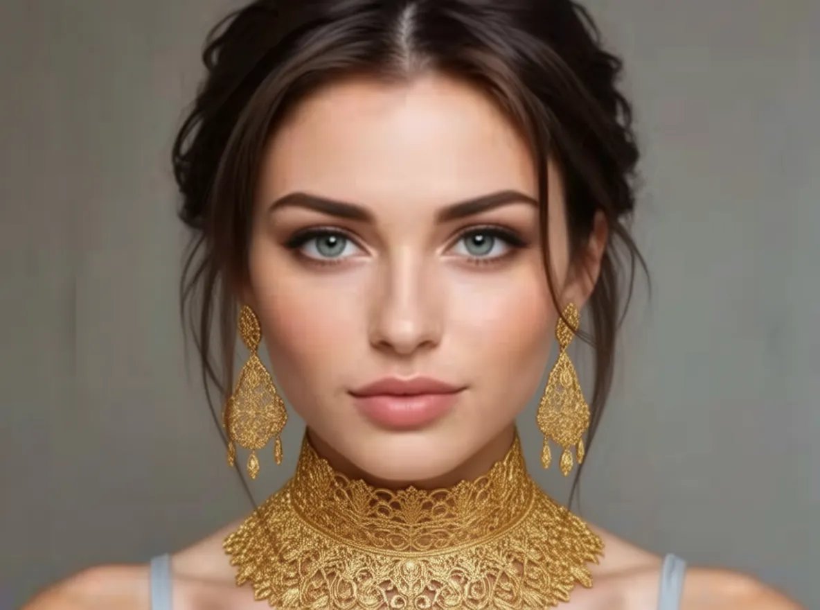 ประดับตัวด้วยทอง.มีพลังอันไร้กาลเวลาในทอง. แปลงภาพถ่ายของคุณให้กลายเป็นผลงานชิ้นเอกแห่งความหรูหราคลาสสิก, ละเอียดอย่างประณีตด้วยความเปล่งประกายอบอุ่น, ของเครื่องประดับที่ทำด้วยมือ. ค้นพบตัวตนทองภายในตัวคุณ.
