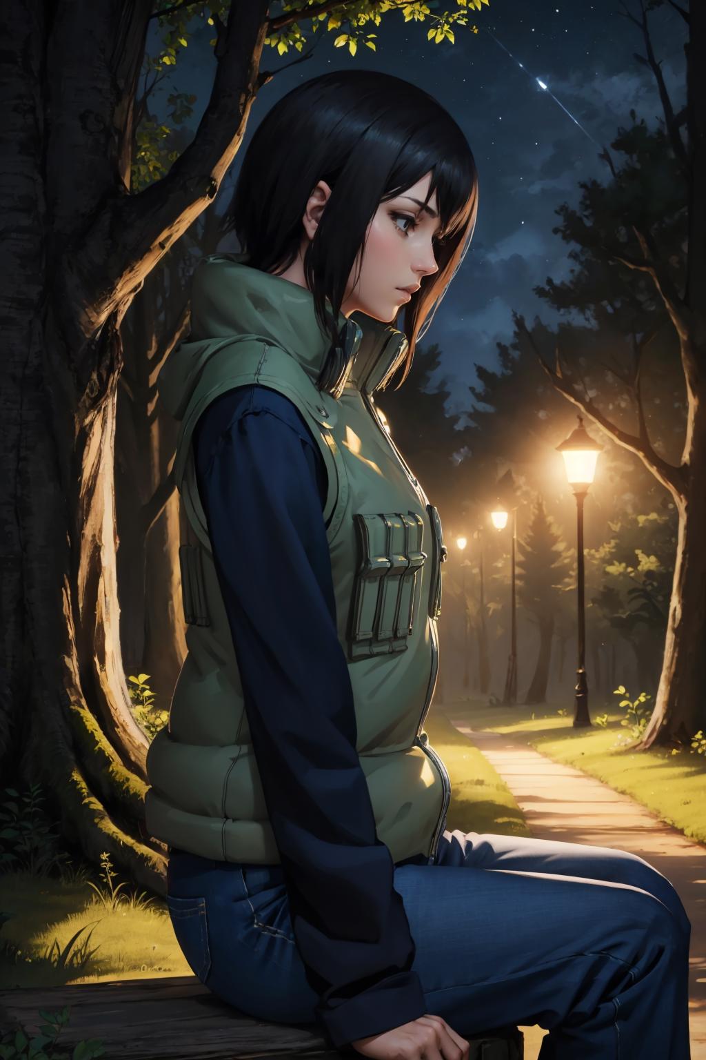 Add "vest, long sleeves, pants" for her jōnin outfit.